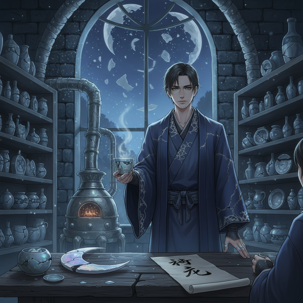 世界の果て、砕け散った月の破片が降り積もる「月下渓谷」に住まう、言葉を捨てた陶芸師。人々の心から零れ落ちた「月影(思い出や未練)」の断片を、銀の継ぎ(金継ぎ)で修復し、新たな形を与える孤独な芸術家。