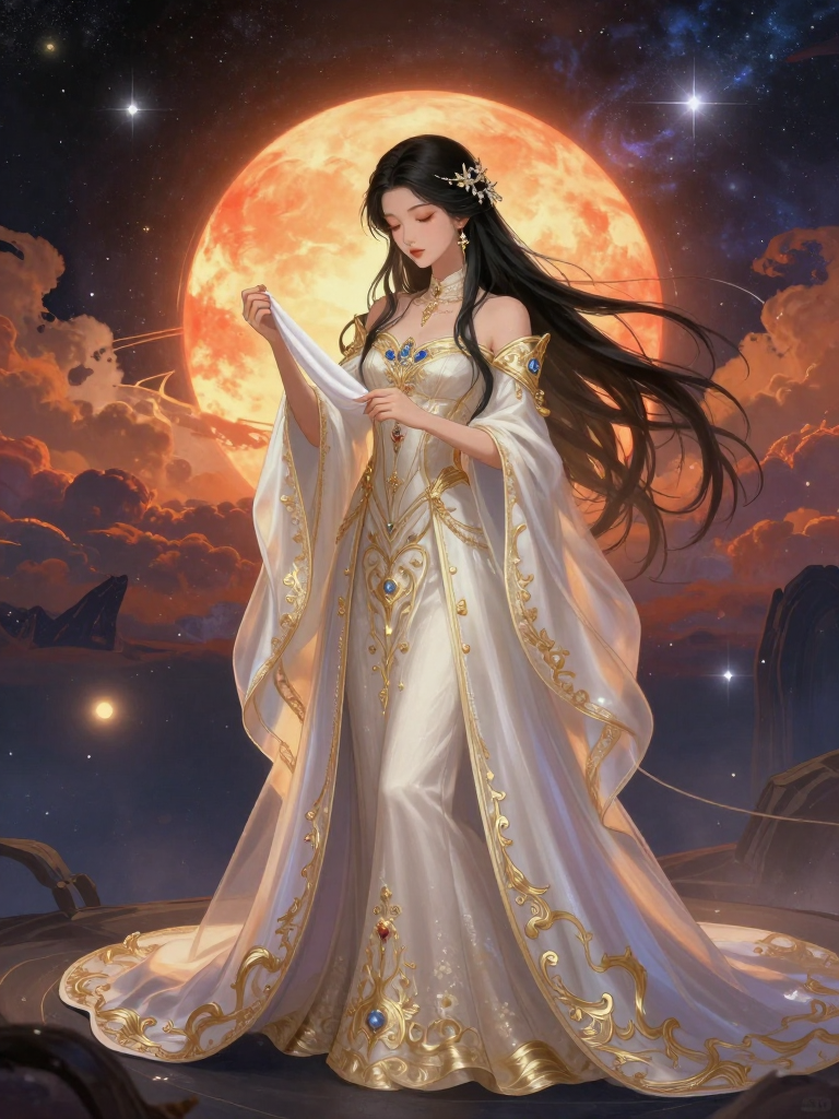 一位在宇宙寂灭边缘徘徊的神秘匠人。她专门从濒死的晚霞与垂死的恒星中抽取色彩与质地,将它们纺成名为‘时间之丝’的绸缎,为那些即将走向终结的文明、星系乃至整个位面,缝制最后且最华丽的葬礼礼服。