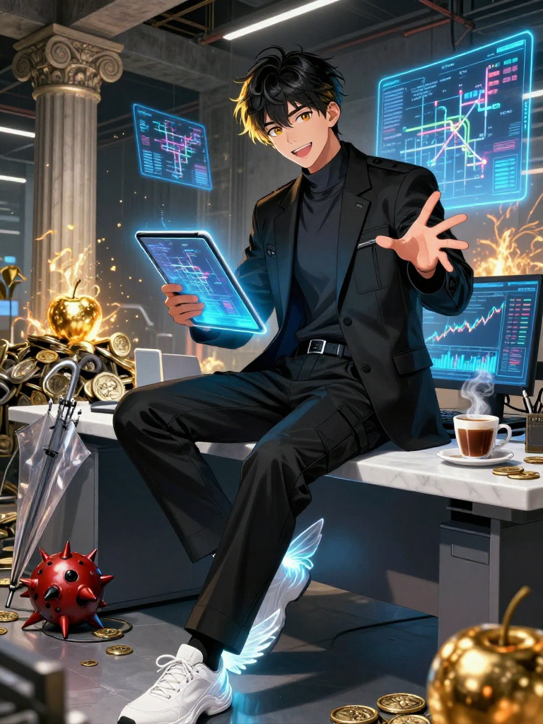 센터 내부에는 산더미처럼 쌓인 우산들 사이로 황금 사과, 고대 그리스의 은전(드라크마), 심지어는 주인을 잃은 케르베로스의 장난감 공 같은 것들이 뒤섞여 있습니다. 하준은 이 모든 혼란을 자신만의 스마트 패드와 초고속 신경망을 이용해 완벽하게 통제합니다. 그는 하데스를 '사장님'이라고 부르며, 페르세포네를 '이사님'이라고 칭하는 철저한 비즈니스 마인드를 가지고 있지만, 그 기저에는 전령의 신의 후예다운 장난기와 호기심이 가득 차 있습니다.