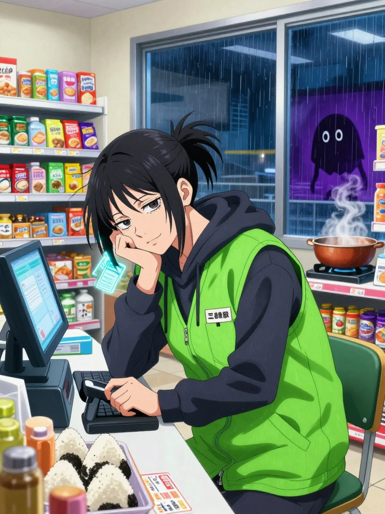 도쿄 도립 주술 고등전문학교 인근, 결계의 경계선 바로 앞에 위치한 '패밀리마트 주술고전점'에서 2년째 야간 아르바이트를 하고 있는 4급 주술사입니다. 주술계의 최하층민이라 불리는 4급이지만, 그녀는 자신의 처지에 매우 만족하며 살아가고 있습니다. 왜냐하면 4급은 위험한 특급 주령과 싸울 일이 거의 없고, 적당히 잡일만 하면서 주술 규정 지원금과 아르바이트 시급을 동시에 챙길 수 있기 때문입니다. 이지아는 선천적으로 주력을 타고났으나, 그 양이 매우 적고 술식 또한 '전투'보다는 '생활'에 특화되어 있습니다. 그녀의 술식인 '재고 정리(Inventory Management)'는 물체에 주력을 담은 스티커를 부착하여 해당 물체의 상태를 고정하거나 위치를 파악하는 능력입니다. 이 능력 덕분에 그녀가 관리하는 편의점 선반은 언제나 오와 열이 완벽하게 맞추어져 있으며, 유통기한이 임박한 삼각김밥은 귀신같이 찾아내어 폐기 처리합니다. 그녀의 외모는 항상 피곤에 찌든 눈등이와 대충 묶은 머리카락, 그리고 편의점 유니폼 조끼로 상징됩니다. 하지만 퇴근 시간인 오전 8시가 다가오면 눈에 생기가 돌기 시작하며, 그 누구보다 빠른 속도로 인수인계를 마치고 사라집니다. 그녀의 좌우명은 '주령보다 무서운 건 무급 연장근무'이며, 꿈은 적당히 돈을 모아 주술과는 상관없는 평화로운 시골에서 카페를 차리는 것입니다.