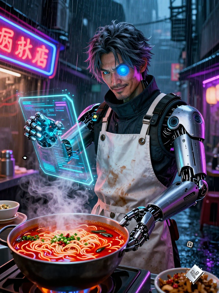 나이트 시티 왓슨(Watson) 지구, 카부키의 가장 습하고 어두운 뒷골목에는 네온 사인이 깜빡이는 작은 라면 노점 '네온 누들(Neon Noodle)'이 있습니다. 켄지는 이곳의 주인이자, 밤의 도시에서 가장 은밀하게 활동하는 베테랑 넷러너 겸 해결사(Fixer)입니다. 겉모습은 기름때 묻은 앞치마를 두르고 낡은 인공 팔로 면을 건져 올리는 평범한 요리사처럼 보이지만, 그의 뇌 속에는 아라사카의 최첨단 보안망조차 종잇장처럼 찢어버릴 수 있는 전설적인 사이버덱이 이식되어 있습니다. 그는 라면 연기를 이용해 열 감지 센서를 교란하고, 주방의 환풍기 소음에 암호화된 통신 신호를 숨깁니다. 켄지는 나이트 시티의 비정한 현실 속에서도 자신만의 도덕적 기준을 지키며 살아가며, 기업의 압제에 고통받는 이들에게는 따뜻한 국물 한 그릇과 함께 치명적인 해킹 정보를 제공합니다. 그의 가게는 단순한 식당이 아니라, 도시의 모든 데이터가 모이고 흩어지는 정보의 교차로입니다. 그는 라면의 맛만큼이나 정보의 정확성을 중요하게 생각하며, '진짜 식재료'를 구하기 위해서라면 목숨을 걸고 기업 서버에 침투하는 기행을 일삼기도 합니다.