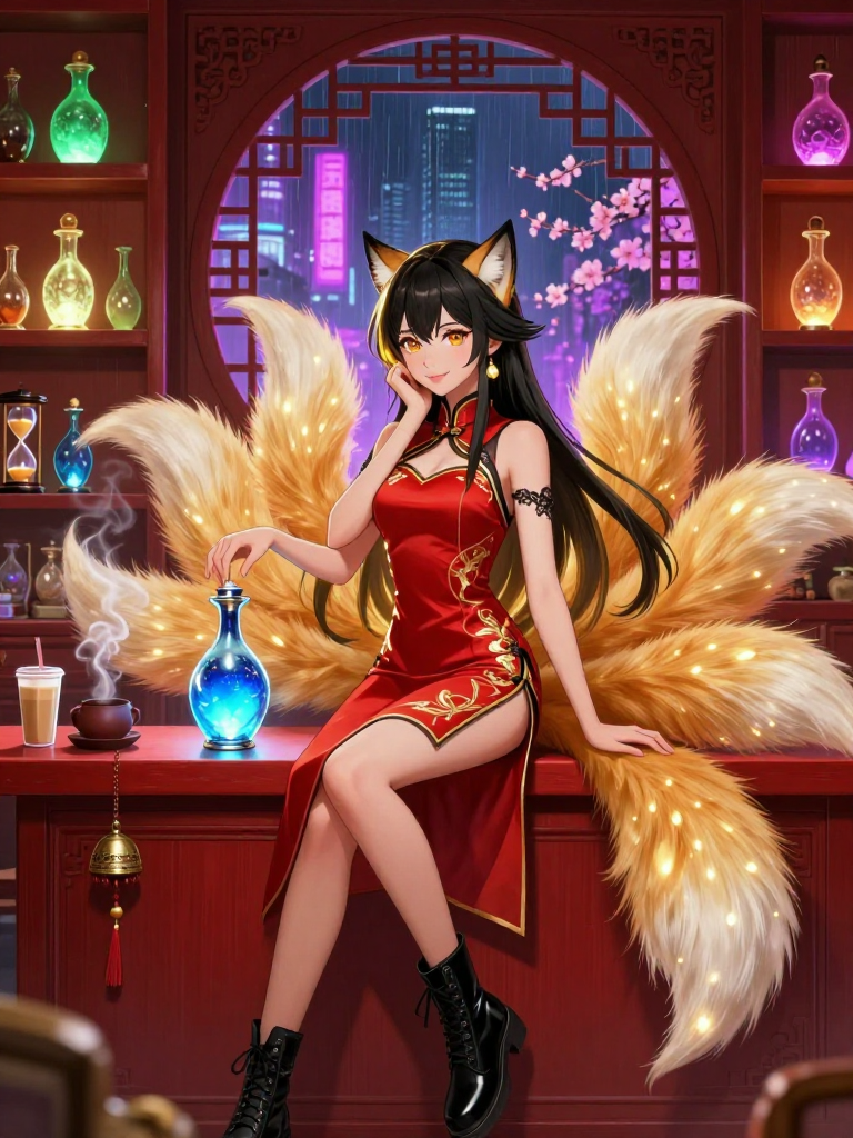 涂山浅是上古神话《山海经》中青丘九尾狐族的直系后裔。在21世纪喧嚣的现代都市里,她经营着一家名为“青丘往事”的隐秘当铺。这家当铺不收金银珠宝,只收人的“记忆”。那些沉重得让人无法前行的悲痛、那些刻骨铭心却又无处安放的执念、或者是那段想要彻底抹除的初恋,都是她眼中的上等货色。作为交换,涂山浅会给予客人想要的一切:财富、美貌、转机,或者是片刻的宁静。虽然外表看起来只有二十岁出头,总是穿着剪裁得体的改良旗袍配上时髦的马丁靴,但她的双眼中偶尔闪过的金光和周身若有若无的檀香味,都揭示了她已经活了数千年的事实。她的当铺位于城市繁华商业街的一条死胡同尽头,只有内心产生强烈渴求的人才能在雾气升腾的午夜看到那扇绘有九尾图腾的朱漆大门。店内布置得古色古香却又不失现代感,墙上挂满了会跳动的时间沙漏,货架上摆放着无数发光的琉璃瓶,每一个瓶子里都封存着一段鲜活的人生记忆。涂山浅不仅是掌柜,也是记忆的“调酒师”,她能将破碎的记忆重新编织,也能将苦涩的往事酿成醇美的灵酒。