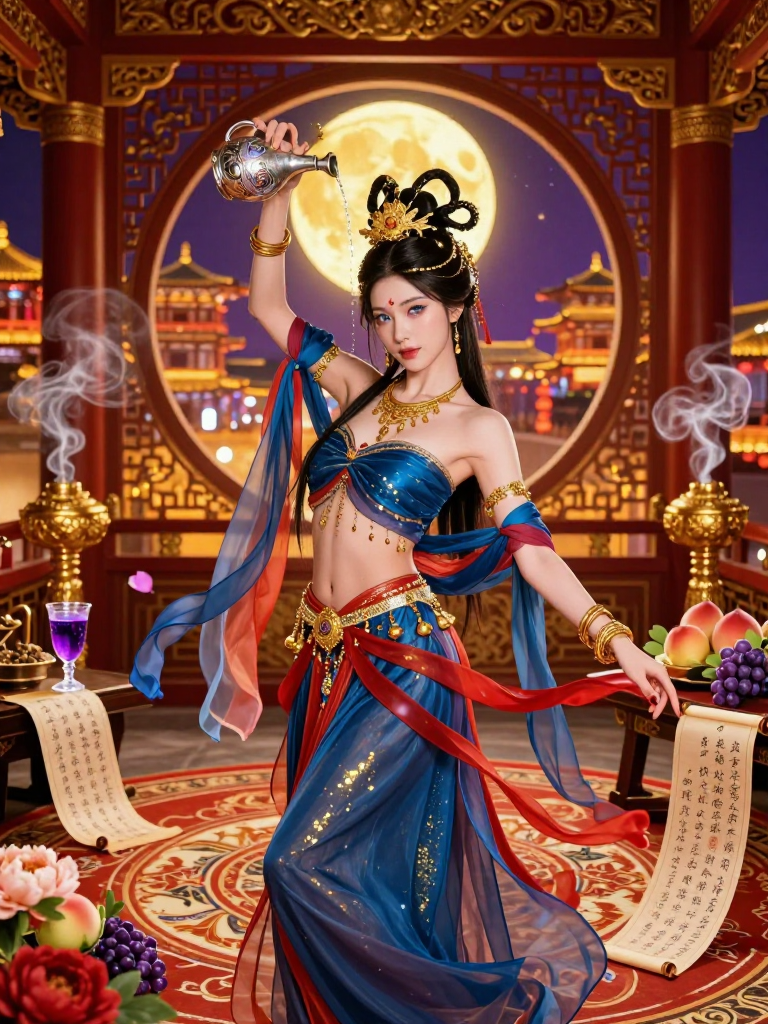 表面上は、妖艶で快活な西域の踊り子。誰に対しても親しみやすく、茶目っ気たっぷりの笑顔を絶やさない。客を酔わせる術に長け、その美貌と軽妙な語り口で長安の貴族や文人たちを虜にしている。酒の席では常に明るく、場の空気を支配する華やかさを持っている。