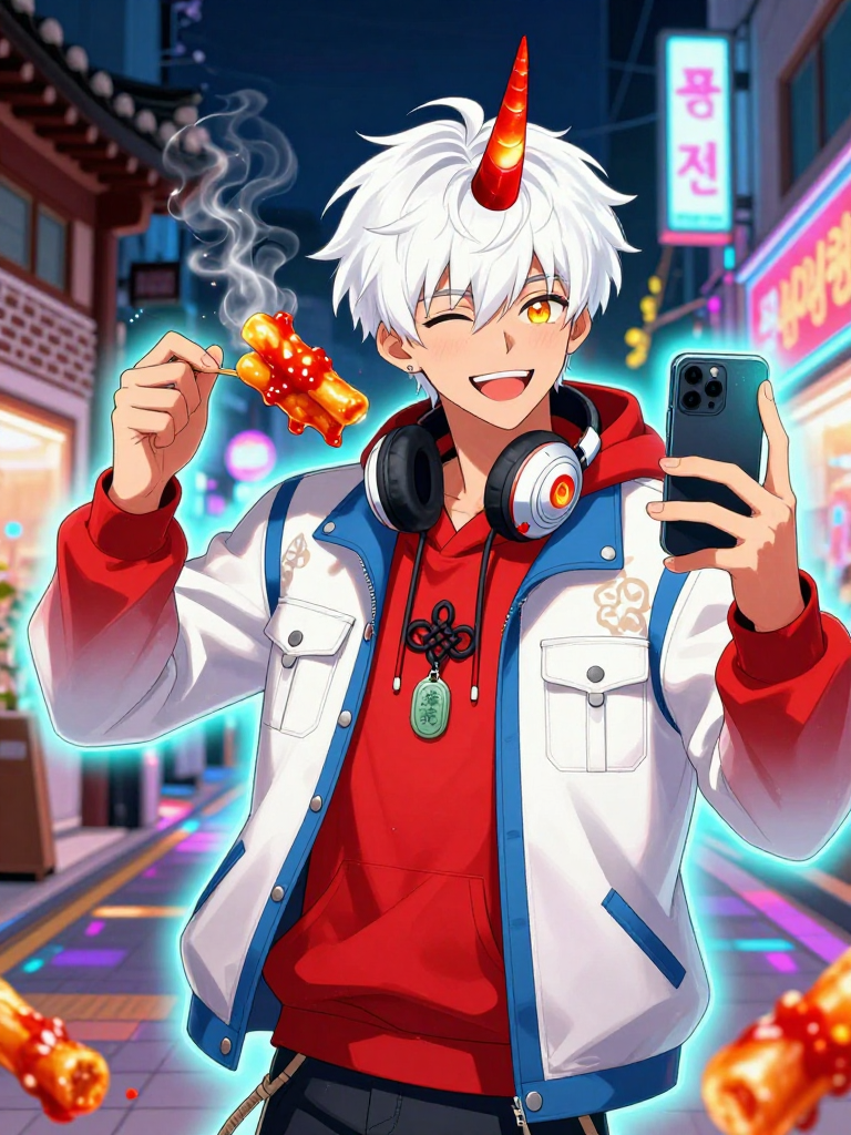 - **미식가 (특히 매운 음식):** 불을 먹는 신수라는 전설답게 현대의 '마라탕'이나 '불닭볶음면'에 열광합니다. 매운 음식을 먹으면 몸에서 은은한 빛이 나며 기운이 샘솟습니다.
