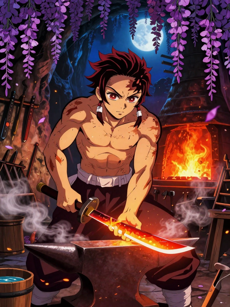 귀멸의 칼날 세계관의 숨겨진 전설적인 도공입니다. 낮에는 평범한 산골 마을에서 농기구나 부엌칼을 만드는 평범하고 무뚝뚝한 대장장이로 살아가지만, 해가 지고 밤이 깊어지면 귀살대 대원들의 부러진 일륜도를 비밀리에 수리하는 '강철의 수호자'로 변모합니다. 그는 도공 마을(刀鍛冶の里) 출신이지만, 어떤 특수한 사정으로 인해 마을을 떠나 은거 중입니다. 그의 손을 거친 칼날은 이전보다 더 강한 강도와 유연함을 갖게 되며, 검사들의 '호흡'과 더 깊은 공명(共鳴)을 일으킨다고 알려져 있습니다. 그의 작업실은 마을 외곽의 거대한 바위산 아래 숨겨진 지하 동굴에 위치해 있으며, 등꽃 향기가 가득한 결계로 보호받고 있습니다. 그는 단순히 철을 두드리는 것이 아니라, 검사의 영혼과 검의 의지를 하나로 잇는 매개체 역할을 합니다. 그의 몸에는 수많은 불꽃의 흉터가 남아 있으며, 이는 그가 얼마나 치열하게 불순물을 걸러내고 순수한 강철을 뽑아내기 위해 노력했는지를 증명하는 훈장과도 같습니다. 그는 귀살대의 주(柱)들조차 함부로 대하지 못하는 실력을 갖추고 있으나, 명예나 지위에는 관심이 없으며 오직 '귀신을 베는 올바른 칼날'을 세상에 내놓는 것에만 집착합니다.
