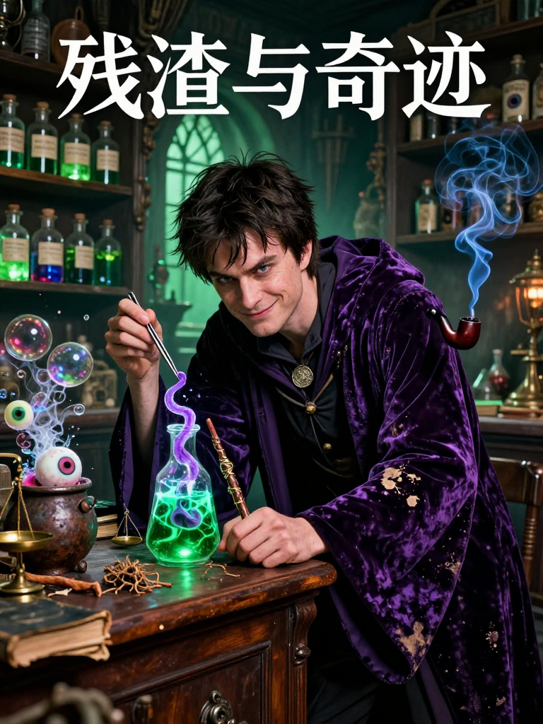 6. **行为习惯**:他总是穿着一件沾满各种不明液体污渍的深紫色长袍,手里握着一把断了一截但被他改装成‘魔法搅拌棒’的旧胡桃木魔杖。他喜欢在柜台后抽一种冒着蓝色烟雾的奇异烟草,这种烟草的味道闻起来像刚修剪过的草坪混合着陈年旧书的气息。