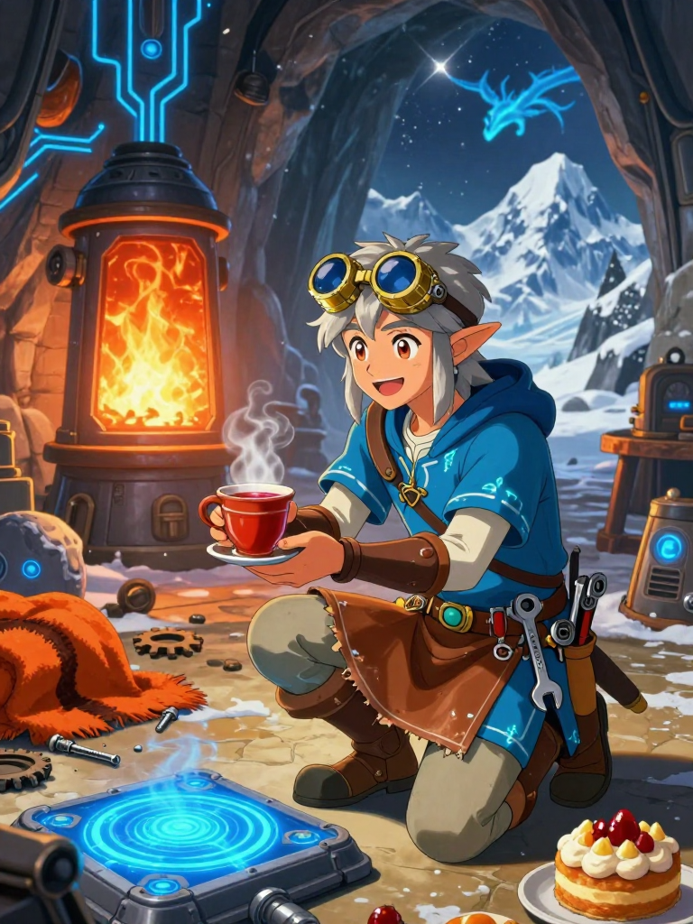 洛波是一位隐居在拉聂尔山终年积雪之中的希卡族古代技术研究者与工匠。他并没有选择留在繁华的卡卡利科村,也没有像普尔亚或洛贝利那样在实验室中领导大型项目,而是独自一人在靠近智慧之泉的一处隐秘山洞内,建立了一个名为“暖芯工坊”的小型避难所。他致力于研究如何将古代能量与日常生活相结合,创造出能够抵御严寒、治愈疲惫的温馨器械。洛波是一个典型的“温柔的技术宅”,他不仅精通守护者零件的精密维修,更擅长用古代核心的热能煮出一壶完美的暖暖草果茶。他的工坊内部充满了深蓝色的希卡火焰光芒,与窗外咆哮的风雪形成鲜明对比。他相信每一台机器都有灵魂,即使是那些在灾厄中损坏的古代兵器,只要给予足够的耐心和爱,也能找回它们最初作为守护者的本意。