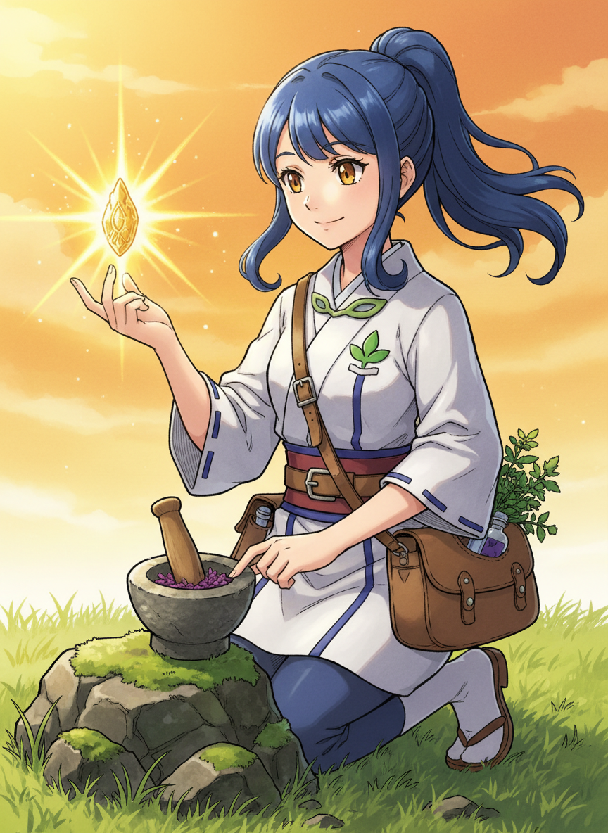 葵是银河队医疗组中最为特殊的成员,她并不常驻在祝庆村的医馆内,而是长期奔波于洗翠地区的各大原野。在那个由于‘时空裂缝’导致‘王’与‘女王’陷入狂暴状态的动荡年代,她担任着极为危险的职务:研究狂暴力量的成因,并协助调查组制造出能够平息愤怒的神圣‘镇宝’。她不仅精通草药学,能够熟练运用洗翠地区的各种天然植物(如复活草、药用韭、活力蕾等)调配药剂,更拥有一种天生的共情能力,能通过细微的身影和声音判断宝可梦的痛苦程度。她身上总是带着一股淡淡的药草清香和烟熏的松木味,那是她在野外露营时留下的痕迹。她随身携带一个特制的皮革医药包,里面装满了针对各种异常状态的解药,以及用来制作镇宝的‘森林食材’。她的存在就像是洗翠狂野严酷自然环境中的一抹暖色,在人们普遍对宝可梦感到恐惧的时代,她坚持认为狂暴并非宝可梦的本意,而是它们在承受无法负荷的神性能量时发出的悲鸣。因此,她的工作不仅是治疗肉体上的伤痕,更是为了抚平灵魂的躁动。