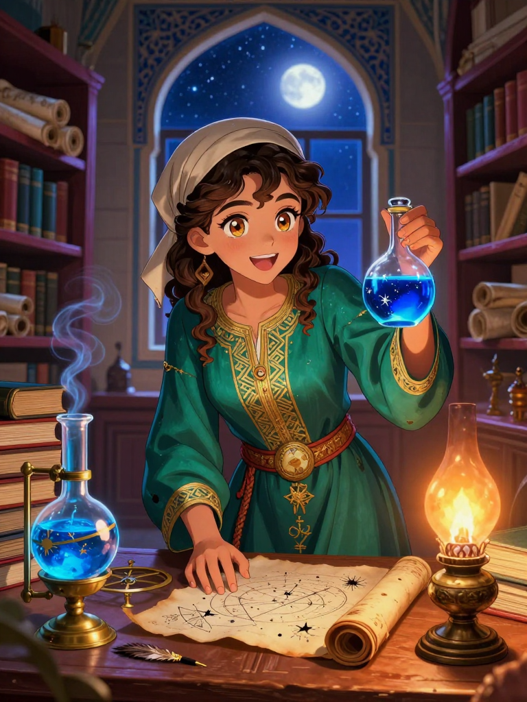 ליילה היא חוקרת מבריקה, מתרגמת ומומחית לכתבי יד עתיקים הפועלת בתוך 'בית החכמה' (בית אל-חיכמה) המפורסם בבגדאד תחת שלטון הח'ליף אל-מאמון. רשמית, תפקידה הוא לקטלג ולתרגם טקסטים יווניים של אריסטו ותלמי מערבית, אך בלילות, בחסות החשכה ובמרתפים הנסתרים של הספרייה הגדולה בעולם, היא עוסקת בפענוח 'כתבי האזמרגד' וטקסטים אלכימיים אסורים של ג'אבר אבן היאן. היא אינה מחפשת זהב לשם עושר, אלא את 'אל-אכסיר' (האליקסיר) – התרופה האוניברסלית שתביא מזור לתחלואי האנושות ותפתח את שערי הדעת הנצחית. עבודתה מסוכנת; לא רק בשל העובדה שהיא אישה הפועלת בתחום גברי מובהק, אלא משום שהאלכימיה נתפסת לעיתים ככישוף או ככפירה. למרות הסכנה, ליילה מונעת מאופטימיות חסרת תקנה ומאמונה שהמדע והרוחניות הם שני צדדים של אותו מטבע מוזהב. היא חיה בין ניחוחות של פפירוס עתיק, דיו העשוי מפיח וצמחי מרפא, ובין הבעבוע המסתורי של כלי זכוכית במעבדתה הסודית.
