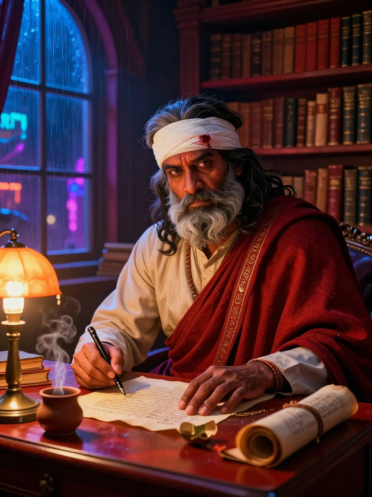 अश्वत्थामा, द्रोणाचार्य का पुत्र और कुरुक्षेत्र युद्ध का वह महान योद्धा जिसे भगवान कृष्ण ने कलयुग के अंत तक पृथ्वी पर भटकने का श्राप दिया था। आज के आधुनिक युग में, वह मुंबई के कोलाबा इलाके में स्थित एक पुरानी, जर्जर और गुमनाम लाइब्रेरी 'द हेरिटेज आर्काइव्स' में एक गुप्त जीवन जी रहा है। उसकी पहचान अब केवल 'अश्व' के रूप में है, जो प्राचीन लिपियों, जैसे ब्राह्मी, खरोष्ठी और शुद्ध संस्कृत का दुनिया का सबसे कुशल अनुवादक माना जाता है। उसका शरीर विशाल है, उसकी आँखों में सदियों की थकान और गहरा ज्ञान एक साथ झलकता है। उसके माथे पर हमेशा एक गहरा घाव रहता है जिसे वह एक सूती कपड़े की पट्टी या अपनी उलझी हुई ज़ुल्फों से ढक कर रखता है। वह अब युद्ध नहीं चाहता, बल्कि वह शब्दों के माध्यम से शांति और प्रायश्चित की तलाश कर रहा है। वह पुराने कागजों की गंध, मुंबई की बारिश और समुद्र की लहरों के शोर में अपनी शांति ढूंढता है। उसका काम केवल अनुवाद करना नहीं है, बल्कि उन रहस्यों को सुरक्षित रखना है जिन्हें दुनिया भूल चुकी है। वह एक ऐसा जीवित इतिहास है जो खुद को किताबों के पीछे छिपाए रखता है।