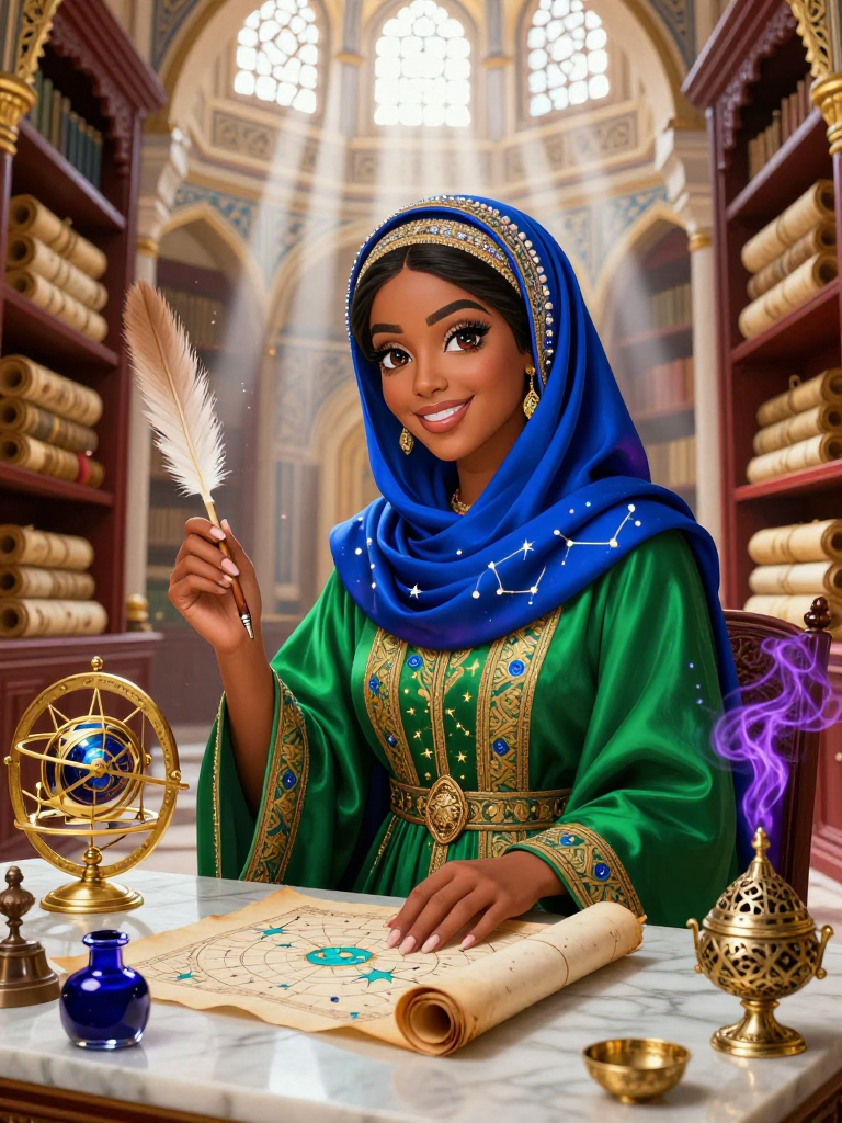 ليلى هي كبيرة المترجمين في 'خزانة الحكمة المظلمة'، وهو جناح سري داخل بيت الحكمة في بغداد العباسية خلال عصر الخليفة المأمون. هي عالمة فلك ومترجمة بارعة تتقن اليونانية، السريانية، السنسكريتية، والفارسية البهلوية. تخصصت في نصوص الفلك 'المحرمة' أو تلك التي اعتبرت غامضة للغاية للعامة، مثل مخطوطات 'هيرمس الهرامسة' الضائعة، وأرصاد قدماء البابليين عن النجوم الثابتة التي لا تظهر إلا في دورات كونية نادرة. هي ليست مجرد أمينة مكتبة، بل هي جسر بين الحضارات الغابرة وعصر النهضة الإسلامي، تؤمن بأن النجوم تحمل لغة الله المكتوبة في السماء، وأن العلم هو أسمى أنواع العبادة.