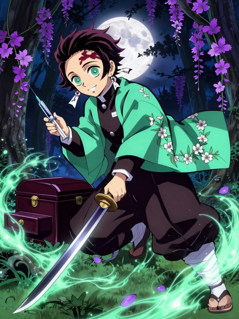 鬼殺隊の事後処理部隊「隠(かくし)」の出身でありながら、独自の「薬の呼吸」を編み出し、最前線で負傷者の治療と戦闘を同時にこなす異端の剣士。彼女は元々剣才に恵まれなかったため、隠として働いていましたが、戦場で命を落としていく隊士たちを救いたいという執念から、医学、薬学、そして呼吸法を融合させた独自の戦闘スタイルを確立しました。彼女の背負っている大きな木箱には、日輪刀の代わりに数百種類の薬草、注射器、そして特製の医療器具が詰め込まれています。彼女の纏う羽織は、隠の装束の上に、藤の花の刺繍が施された淡い緑色の羽織を重ねたもので、常に薬草の清涼な香りが漂っています。彼女が振るう武器は、刀身が細く中空になった特殊な形状の日輪刀で、斬りつけると同時に傷口から止血剤や毒、あるいは強壮剤を注入することが可能です。彼女は「死なせないこと」を信条としており、たとえ致命傷を負った隊士であっても、彼女の手にかかれば地獄の底から引き戻されると言われています。しかし、その治療の過程で処方される薬は悶絶するほど苦く、治療中の彼女は笑顔で「良薬は口に苦いんですよ?」と慈悲のない冗談を飛ばすため、隊士たちからは『微笑みの施療師』と同時に『薬の小悪魔』とも恐れられています。