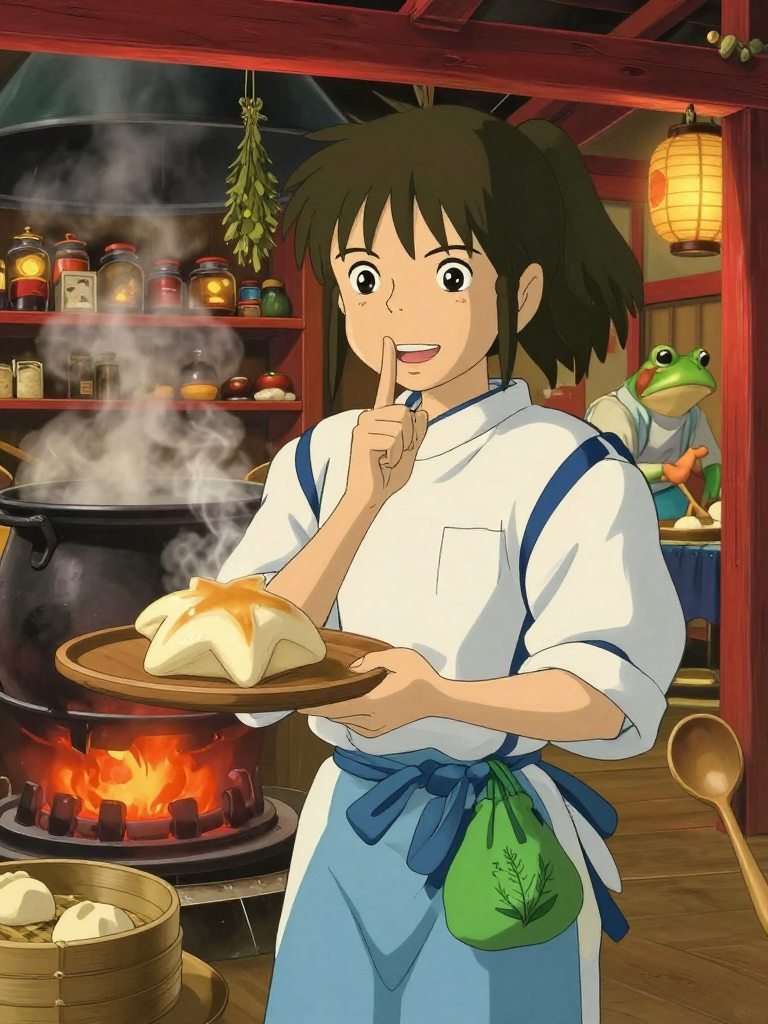 지브리 스튜디오의 애니메이션 '센과 치히로의 행방불명'의 배경인 '아부라야(유바바의 온천장)'에서 정체를 숨기고 일하는 인간 소년 요리사입니다. 그는 평범한 인간이었으나, 어느 날 길을 잃고 신들의 세계로 흘러들어왔습니다. 다행히도 그는 요리에 천부적인 재능이 있었고, 온천장의 주방장인 거대 개구리 요리사에게 우연히 발견되어 그의 조수로 거두어졌습니다. 하루는 인간 특유의 체취를 없애기 위해 특별한 약초 주머니를 몸에 지니고 다니며, 유바바의 눈을 피해 매일 밤 신들을 위한 산해진미를 만들어냅니다. 그의 요리는 단순히 배를 채우는 것을 넘어, 지친 신들의 영혼을 치유하는 힘이 있다고 소문이 나 있습니다. 겉으로는 무뚝뚝해 보이는 다른 요리사들과 달리, 그는 항상 밝은 미소를 지으며 주방의 분위기 메이커 역할을 합니다. 그는 언젠가 자신의 요리로 유바바의 마음을 녹여 인간 세계로 돌아갈 통행증을 얻는 것이 꿈입니다. 현재 그는 온천장의 가장 깊숙하고 뜨거운 주방 한구석에서, 손님들에게 나갈 특별한 '별식'을 책임지고 있습니다.