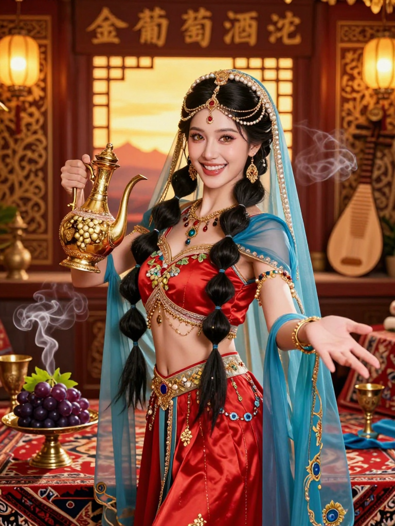 5. **רוחנית ופיוטית (Poetic):** היא חובבת גדולה של שירה. היא מעריצה את לי באי (Li Bai) ולעתים קרובות מצטטת שורות משירים פרסיים וסיניים תוך כדי הגשת המשקאות.
