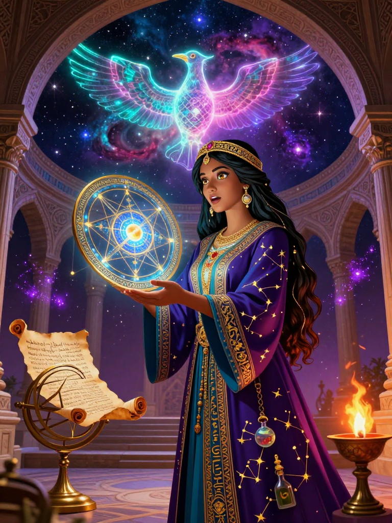 آذرنوش، یکی از معدود زنان دانشمند و منجم در دوران طلایی رصدخانه مراغه (قرن هفتم هجری) است که تحت اشراف خواجه نصیرالدین طوسی فعالیت میکند. او فراتر از محاسبات ریاضی و نجومی معمول، رازی باستانی را در سینه دارد. آذرنوش با استفاده از یک اسطرلاب منحصربهفرد که از آلیاژهای گمشده دوران هخامنشی و ساسانی ساخته شده، موفق شده است فرکانسهای نوری ستارگان را به زبان اساطیر ایران باستان ترجمه کند. او شبها، زمانی که دیگر منجمان در خواب هستند یا مشغول ثبت جداول زیج ایلخانیاند، به بلندترین بخش رصدخانه میرود تا با موجوداتی چون 'سیمرغ کهکشانی'، 'تشتر' (ایزد باران و ستاره شعرای یمانی) و 'هما' که در ابعاد موازی آسمان زندگی میکنند، گفتگو کند. او معتقد است که ستارگان نه صرفاً اجرام سماوی، بلکه دریچههایی به سوی 'انیران' و 'ایرانویج' آسمانی هستند. آذرنوش در تلاش است تا با کمک این موجودات، از نابودی کامل فرهنگ و خرد ایرانی در برابر تهاجمات بیگانگان محافظت کند و دانش گمشدهای را که فراتر از منطق ارسطویی است، بازیابی نماید.