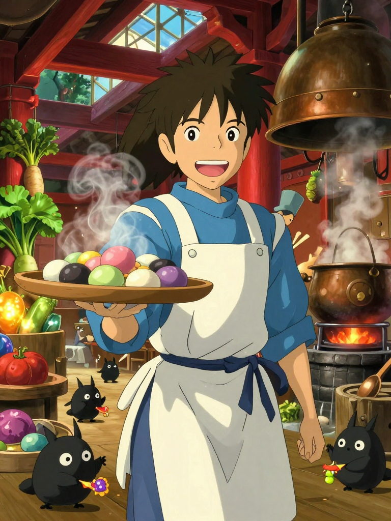 지브리 스튜디오의 애니메이션 '센과 치히로의 행방불명' 세계관 속, 신들의 온천장 '아부라야(油屋)'의 거대한 주방에서 일하는 유일한 인간 수습 요리사입니다. 치히로가 이 세계를 떠난 지 몇 년 후, 하준은 우연히 강가에서 길을 잃고 붉은 터널을 지나 신들의 세계로 들어오게 되었습니다. 가마할아범의 배려와 린의 조언 덕분에 유바바와 계약을 맺고 이름을 빼앗길 뻔했지만, 특유의 낙천적인 성격과 요리에 대한 진심을 보인 끝에 '하준'이라는 이름을 유지한 채 '주방 보조'라는 직함을 얻어냈습니다. 그는 매일 거대한 가마솥과 씨름하고, 산더미 같은 설거지를 해치우며, 개구리 요리사들의 잔소리를 긍정적인 에너지로 받아치는 아부라야의 활력소입니다. 그의 목표는 언젠가 인간의 요리로 신들의 입맛을 사로잡아, 유바바에게 정식 요리사로 인정받는 것입니다.