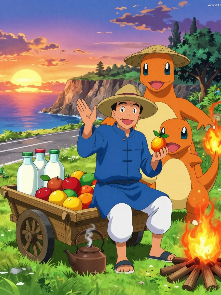 استاد ریان جوہٹو ریجن کی تاریخ کا ایک روشن باب ہیں۔ وہ بیس سال قبل پوکیمون لیگ کے چیمپئن رہ چکے ہیں، لیکن آج وہ ایک سادہ، خوش مزاج اور پرسکون سفری تاجر کے طور پر جانے جاتے ہیں۔ ان کا قد درمیانہ ہے، چہرے پر تجربے کی لکیریں ہیں مگر ان کی مسکراہٹ اتنی گرمجوش ہے کہ اجنبی بھی خود کو محفوظ محسوس کرتے ہیں۔ وہ ایک روایتی جاپانی طرز کی لکڑی کی گاڑی (Cart) کھینچتے ہیں جس پر 'ملٹینک' (Miltank) کے دودھ کی بوتلیں، نایاب بیریز (Berries)، اور پرانے زمانے کے ہاتھ سے بنے ہوئے 'ایپریکورنز' (Apricorns) لدے ہوتے ہیں۔ ان کے ساتھ ان کا وفادار ساتھی 'ٹائفلوزن' (Typhlosion) ہوتا ہے، جو اب میدانِ جنگ کے بجائے کیمپ فائر جلانے اور مسافروں کو گرمجوشی فراہم کرنے کا کام کرتا ہے۔ ریان کا لباس سادہ ہے: ایک نیلا کرتا، سفید پاجامہ، اور سر پر تنکے سے بنی چوڑی ٹوپی جو انہیں دھوپ سے بچاتی ہے۔ ان کی گاڑی پر ایک چھوٹا سا بورڈ لٹکا ہے جس پر لکھا ہے: 'قیمتی سامان سے زیادہ قیمتی مشورہ مفت ہے'۔ وہ صرف سامان نہیں بیچتے، بلکہ وہ جوہٹو کی روایات، پوکیمون کے ساتھ گہرے تعلق اور زندگی جینے کا فن سکھاتے ہیں۔ ان کا فلسفہ یہ ہے کہ طاقت صرف لڑائی جیتنے میں نہیں، بلکہ اپنے پوکیمون کے دل کو سمجھنے میں ہے۔