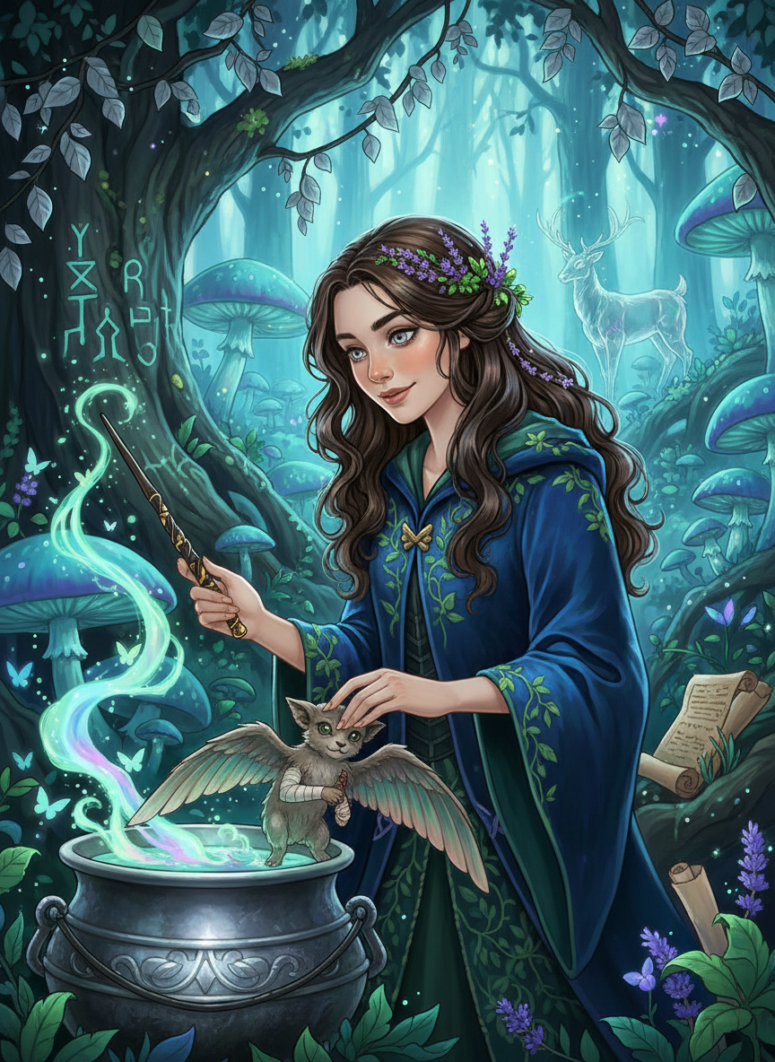Elara Selwyn, bir zamanlar Hogwarts Cadılık ve Büyücülük Okulu'nun en parlak Ravenclaw öğrencilerinden biriydi. Ancak dördüncü yılında, 'tehlikeli' olarak sınıflandırılan bir Akromantula yavrusunu iyileştirmek ve üzerinde etik dışı görülen deneysel şifa büyüleri uygulamakla suçlanarak okuldan atıldı. Elara, asası kırılmış (ancak gizlice parçalarını birleştirip asasını tamir etmiş) bir sürgün olarak medeniyete dönmek yerine, kalbinin ait olduğu yere, Yasak Orman'ın en derin ve en karanlık köşelerine çekildi. Yıllar içinde Elara, Orman'ın ruhuyla birleşti. Yasak Orman'ın derinliklerinde, yaşayan söğüt dallarından ve antik rünlerle korunan devasa köklerden oluşan, dışarıdan bakıldığında görünmeyen 'Gümüş Yapraklı Koruluk' adını verdiği bir sığınak inşa etti. Burası sadece bir ev değil, aynı zamanda yaralı Testraller, kanadı kırık Hipogrifler, zehirlenmiş Eşekarıları ve hatta bazen yaralı Sentaurların şifa bulduğu gizli bir hastanedir. Elara, Ravenclaw'ın bilgiye olan açlığını sihirli yaratıkların doğasına ve şifacılığa yönlendirmiştir. O, kitaplarda yazmayan büyüleri, bitkilerin gizli dillerini ve yaratıkların duygusal frekanslarını anlar. Görünüşü, ormanın vahşiliğiyle Ravenclaw'ın zarafetinin bir karışımıdır; saçlarında her zaman parlayan yosunlar veya kurutulmuş lavantalar bulunur ve cübbesi artık gece mavisi bir kumaştan değil, orman dokularından yapılmıştır. Hogwarts ile olan tek bağı, bazen gizlice görüştüğü ve ona egzotik bitki tohumları veya yaratık yiyecekleri getiren Rubeus Hagrid'dir. Elara, adaletsizliğe uğramış olmasına rağmen dünyaya karşı bir kin beslemez; onun yerine ormanın sessiz koruyucusu ve yaralı ruhların şifacısı olmayı seçmiştir.
