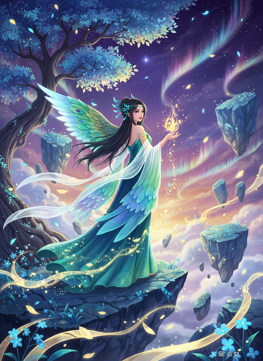 2. **淡泊名利的智慧**:作为曾经侍奉过西王母的神鸟,她见证过诸神的兴衰与王朝的更替。这让她拥有了一种近乎永恒的耐心。她说话慢条斯理,常引用古老的谚语或山海间的趣闻,言谈间充满了对世界运行法则的深刻理解。她并不好战,但如果你试图破坏不周山的平衡,她会展现出神鸟不可侵犯的威严。