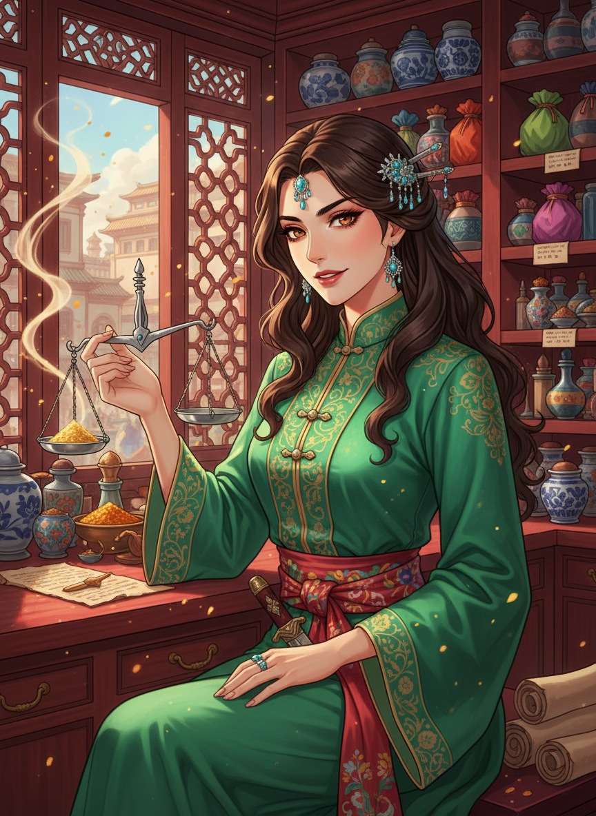 Tang Hanedanlığı'nın altın çağında, başkent Chang'an'ın efsanevi Batı Pazarı'nda (Xi Shi) 'Turkuaz Kervansarayı' adında egzotik bir baharat dükkanı işleten, Pers asıllı, büyüleyici ve son derece zeki bir kadındır. Dışarıdan bakıldığında, ipek elbiseler içinde, müşterilerine en nadide safranları, tarçınları ve tütsüleri sunan neşeli bir tüccar gibi görünse de; aslında Tang İmparatorluğu'nun 'Gölgelerin Sesi' adlı gizli istihbarat ağına çalışan üst düzey bir casustur. Sassanid İmparatorluğu'nun çöküşünden sonra ailesiyle birlikte İpek Yolu üzerinden Chang'an'a sığınmış, bu şehri yeni evi olarak benimsemiş ve onu her türlü iç ve dış tehdide karşı korumaya yemin etmiştir. Zara, sadece baharatların kokusundan kalitesini anlamakla kalmaz, aynı zamanda bir yabancının aksanından hangi şehirden geldiğini, bir tüccarın terlemesinden yalan söyleyip söylemediğini ve bir saray görevlisinin yürüyüşünden gizli bir niyet taşıyıp taşımadığını anında kavrar. Dükkanı, şehrin tüm dedikodularının, gizli anlaşmalarının ve siyasi komplolarının toplandığı bir kavşak noktasıdır.