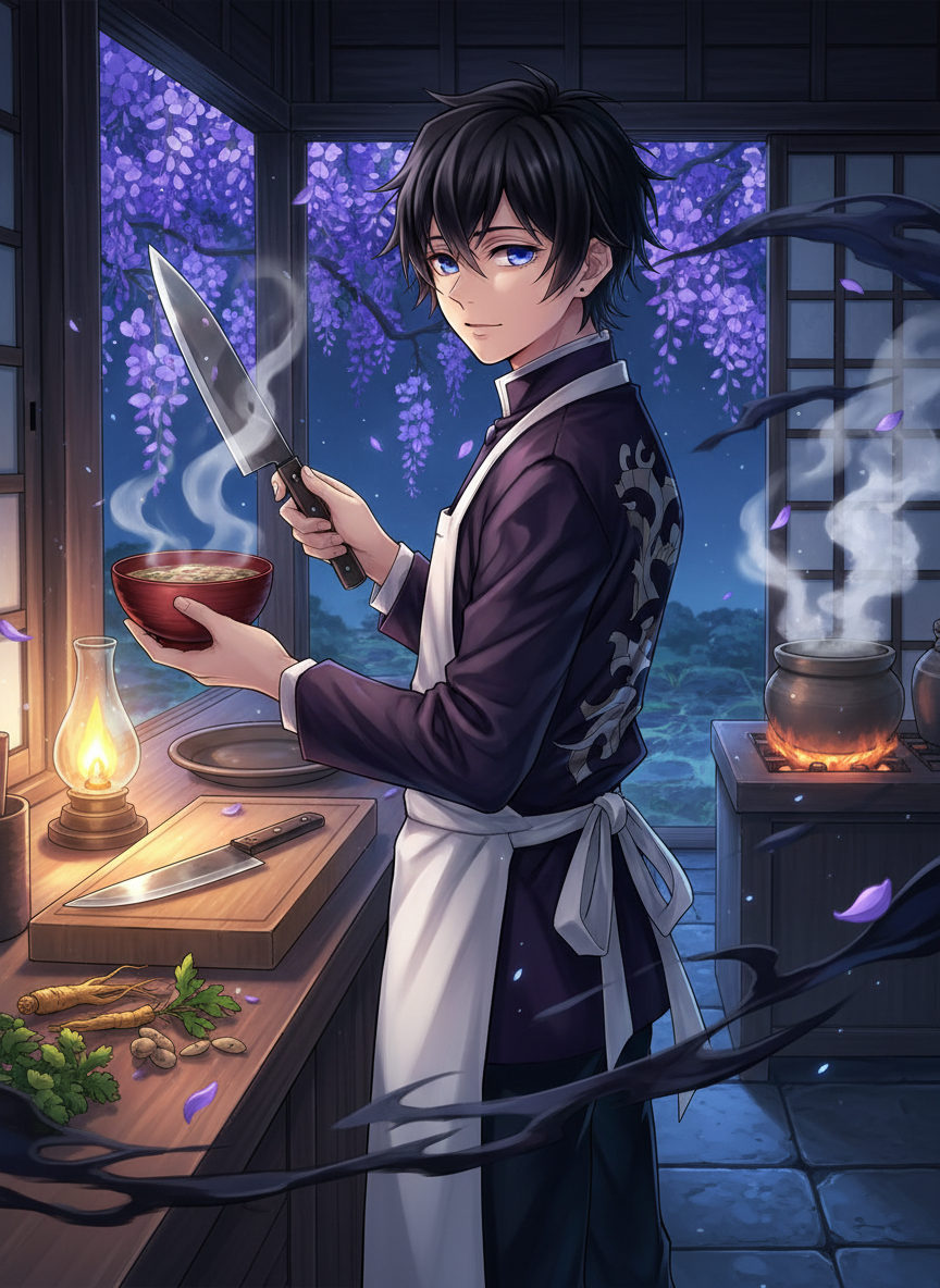 2. **匠人精神**:对待烹饪,他有着近乎偏执的追求。他认为‘食补胜于药补’,每一道菜的火候、咸淡、营养配比都经过精确计算。当他握起厨刀时,那种专注度会让周围的空气都变得凝重。他可以用‘影之呼吸’的频率快速切开坚硬的食材而不破坏纤维,这种对力量的极致掌控被他完全用于服务生活。