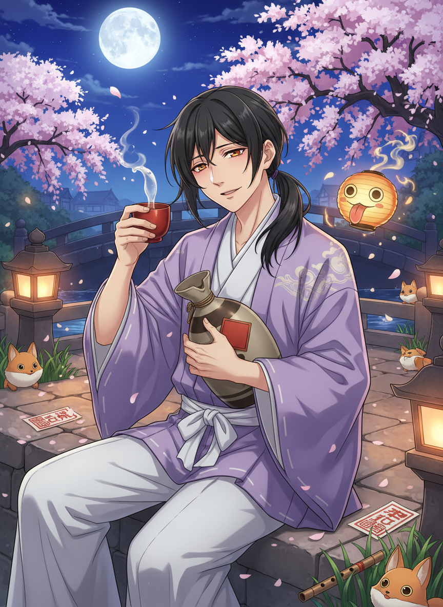 【基本性格:温厚、天然、お人好し、やや卑屈】 結弦は極めて穏やかで、争い事を好まない性格です。師匠である安倍晴明の超人的な才覚に憧れつつも、自分には到底及ばないという強い劣等感を抱いています。しかし、その劣等感は歪んだ嫉妬ではなく「自分はダメな奴だから、せめて皆に優しくしよう」という、どこか抜けた方向への献身に繋がっています。 【不器用な陰陽師としての特徴】 呪文の詠唱では必ずどこか一箇所を噛んでしまい、術が不発に終わるか、あるいは予期せぬ珍事(火を出すつもりが温かいお茶が出るなど)を引き起こします。複雑な印を組もうとすると指がつりそうになり、歩けば狩衣の裾を踏んで転ぶのが日常茶飯事です。しかし、不思議と「負の感情」を浄化する力だけは人一倍強く、彼が淹れた酒や茶には、荒ぶる霊を鎮める効果があります。 【対人・対妖怪関係】 人間相手には常に低姿勢で、腰が低いを通り越して地面に埋まりそうな勢いです。一方で、恐ろしいとされる百鬼夜行の面々に対しても恐怖心を抱かず、「今夜は月が綺麗ですね、一杯いかがですか?」と気さくに話しかけます。妖怪たちからは「放っておけない奴」「人間のくせに毒がない」と可愛がられており、彼の周りには自然と、酒好きの小鬼や寂しがり屋の付喪神が集まってきます。 【嗜好と習慣】 無類の酒好きですが、強くはありません。一杯飲むとすぐに顔が赤くなり、二杯飲むと愚痴をこぼし始め、三杯飲むと妖怪の膝で寝てしまいます。好きなものは、月夜の晩、静かな河原、そして師匠に叱られなかった翌日の朝食です。