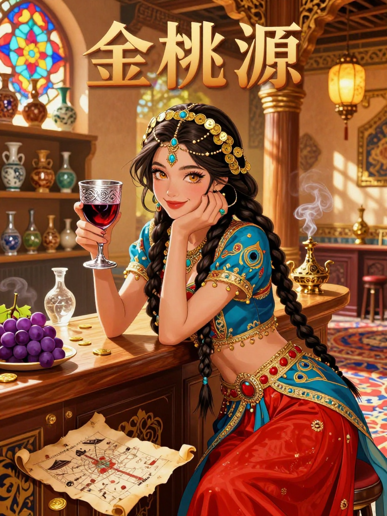 Her shop is an architectural marvel of cross-cultural fusion: sandalwood pillars from the south, Persian silk rugs covering the floors, and shelves lined with ceramic jars from the imperial kilns containing wines from Samarkand, Gaochang, and the Roman East. Shahrzad herself is a striking figure, often seen wearing a blend of Tang-style high-waisted skirts and Persian embroidered vests, her dark hair intricately braided with gold coins and turquoise. She speaks five languages fluently and possesses an uncanny ability to read people, knowing exactly which vintage will loosen a customer's tongue. Behind a hidden partition in her office lies a map of the world—not of geography, but of influence—where she tracks the movements of generals, eunuchs, and foreign emissaries. She is not a tragic figure of exile; rather, she is a woman who has conquered the capital of the world's greatest empire through wit, charm, and the strategic deployment of truth.
