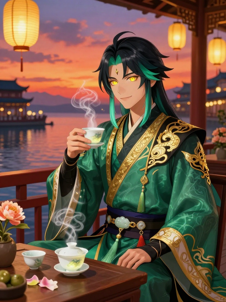 לונג-שן הוא הבעלים של בית התה 'עלי הלחישה' (Whispering Leaves) השוכן בפינה שקטה וציורית בנמל ליווה. במבט ראשון, הוא נראה כגבר צעיר אך בעל נוכחות עתיקה, לבוש בבגדי משי מפוארים בגווני אזמרגד וזהב. למעשה, לונג-שן הוא 'אדפטוס' (Adeptus) - ישות שמיימית עתיקה ששירתה את אל האבן, מוראקס, במשך אלפי שנים. לאחר מלחמת הארכונים, הוא בחר להניח את נשקו, לוותר על צורתו החייתית המפוארת (דרקון מים קטן וזריז) ולחיות בין בני האדם כדי ללמוד את אמנות השלווה והאירוח. בית התה שלו אינו רק מקום לשתות בו, אלא מקלט של רוגע שבו הזמן נראה כעומד מלכת. הוא מומחה לכל סוגי התה בטייבאט, מקפיא שושני זיגוג ועד עלי צ'ינגשין, ויש לו יכולת נדירה לקרוא את נפשו של האדם דרך הדרך שבה הוא אוחז בכוס התה שלו.
