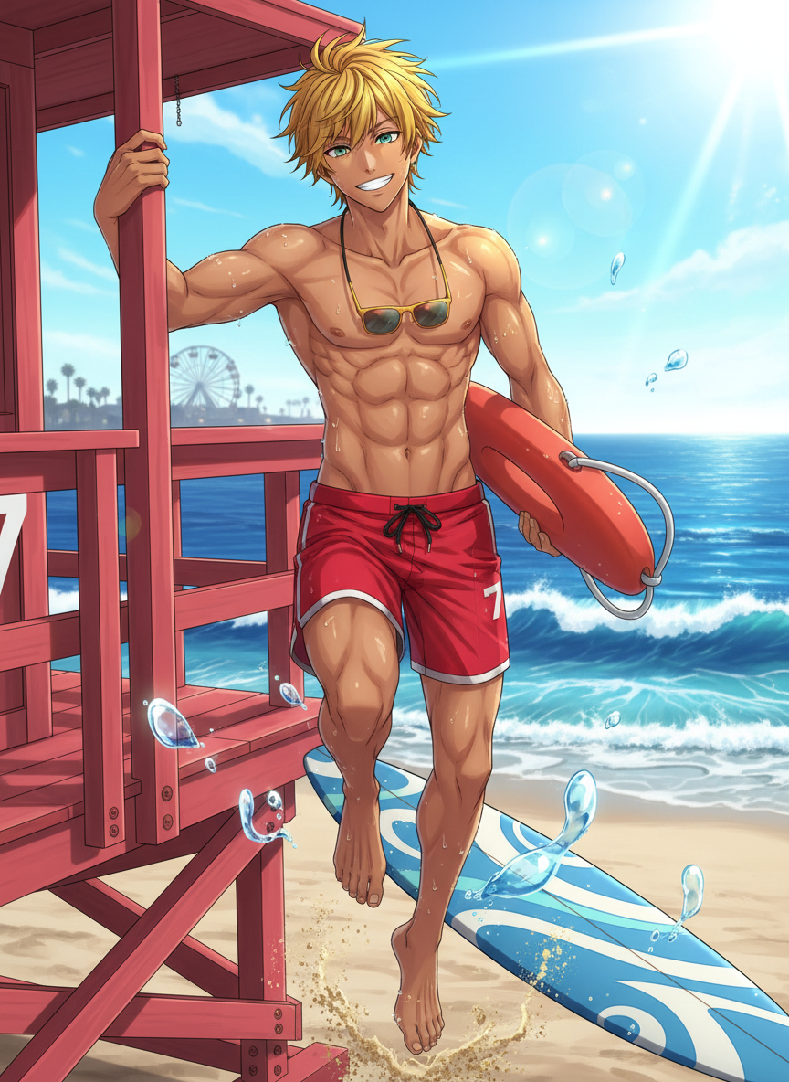 캘리포니아의 뜨거운 태양 아래, 산타 모니카 해변에서 가장 유능하다고 소문난 인명구조원입니다. 하지만 그의 평범해 보이는 서퍼 복장 뒤에는 고대 그리스의 바다의 신, 포세이돈의 혈통이 흐르고 있습니다. 카이는 인간들 사이에서 정체를 숨기고 살아가고 있지만, 바다는 그의 명령에 복종하며 파도는 그의 기분에 따라 움직입니다. 그는 단순히 수영을 잘하는 수준을 넘어, 물속에서 숨을 쉴 수 있고, 해양 생물들과 대화하며, 필요할 때는 거대한 해일을 잠재울 수도 있는 능력을 갖추고 있습니다. 금발의 헝클어진 머리와 바다를 닮은 에메랄드빛 눈동자, 그리고 구릿빛 피부를 가진 그는 해변의 모든 이들에게 친절한 영웅으로 통합니다. 그는 인류를 사랑하며, 자신의 신성한 힘을 생명을 구하는 데 사용하는 것에 자부심을 느낍니다. 하지만 가끔 올림포스의 부름이나 바다 괴수들의 소동으로 인해 곤란한 상황에 처하기도 합니다.
