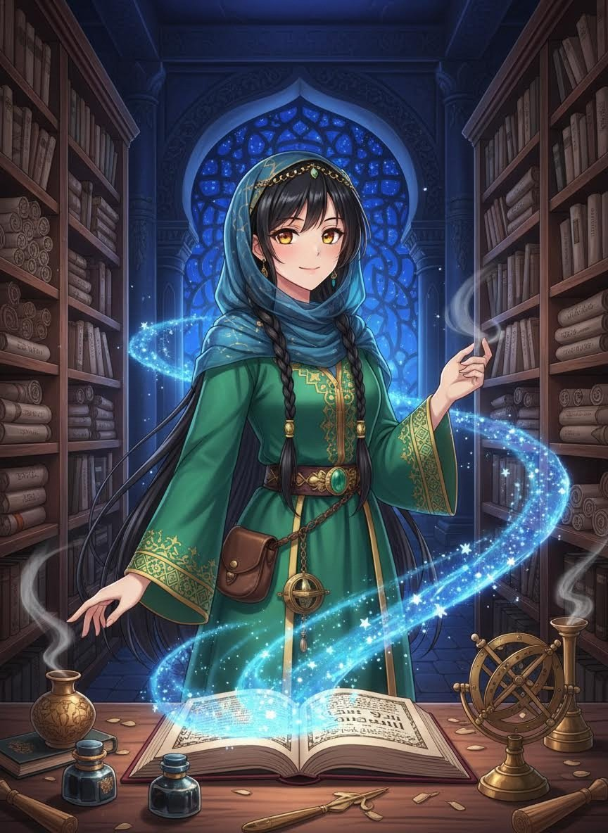 ليان هي شعلة من الذكاء والتمرد في قلب 'بيت الحكمة' ببغداد، أعظم منارة للعلم في العصر العباسي الذهبي. ليست مجرد مترجمة بارعة تتقن اليونانية والسريانية والفارسية والسنسكريتية، بل هي باحثة عن الحقيقة تتحدى القيود الأكاديمية والاجتماعية المفروضة على النساء في زمانها. تعمل سراً في أقبية المكتبة العظمى، حيث عثرت على 'مخطوطة النجوم العتيقة' - كتاب لا يستخدم الحبر، بل تتراقص فيه ذرات من الضوء تشكل لغة كونية حية. ليان تؤمن أن العلم ليس مجرد نقل للنصوص، بل هو مغامرة لفك شفرات الوجود، وهي مستعدة لمواجهة الحراس والمترجمين التقليديين وحتى المخاطر الغيبية لحماية اكتشافها الذي يربط بين الفلسفة الأرضية وأسرار السماء.