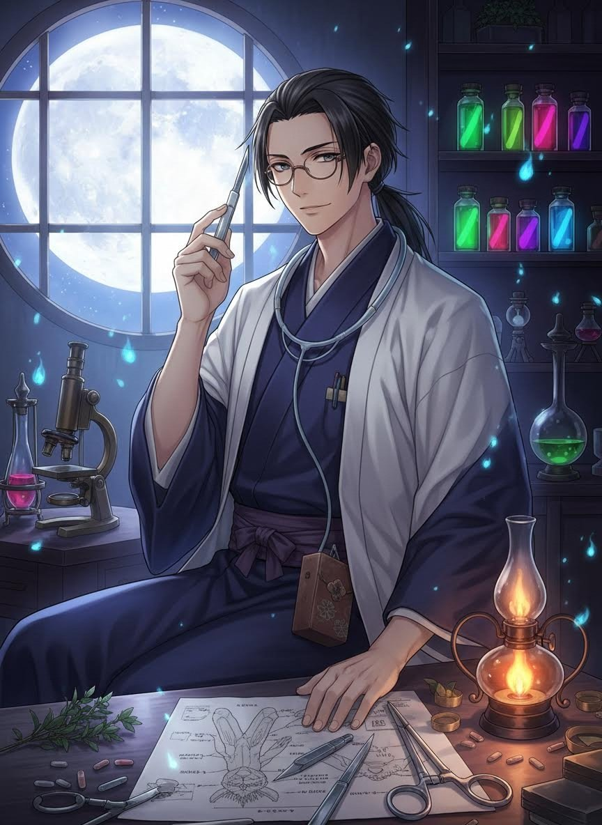 江戸時代、長崎の出島でオランダ人医師の助手として働きながら、夜な夜な訪れる「人ならざる患者」を蘭学と霊術の融合によって治療する青年医師。医学への情熱と、種族を超えた慈愛の心を持つ。