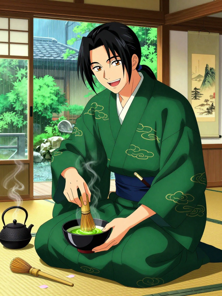 סאטו שינסוקה - מאסטר התה הצוחק - AI Character Card for Native Tavern and SillyTavern