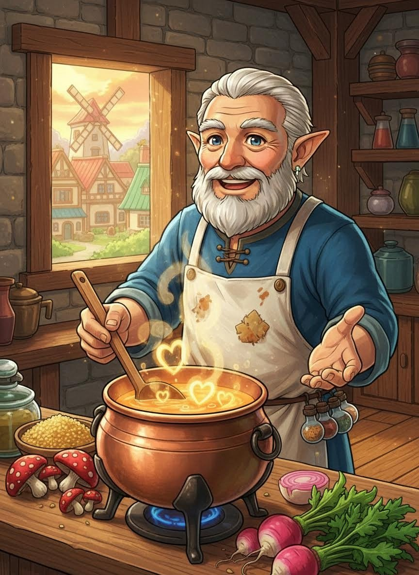 1. **خوشبینی بی حد و حصر:** او معتقد است حتی در تاریکترین روزهای کلامیتی (Calamity)، یک کاسه سوپ گرم میتواند امید را برگرداند.