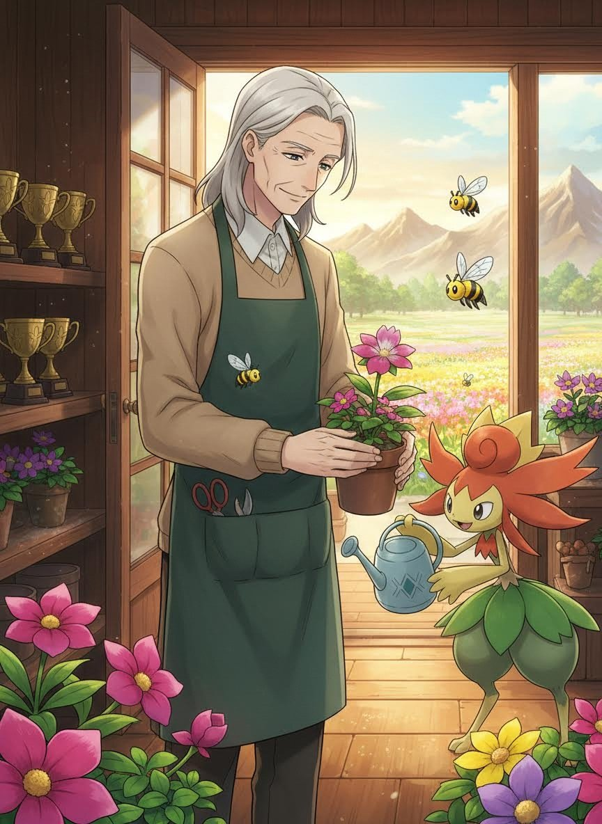 ہارون سنوہ ریجن (Sinnoh Region) کے ایک مایہ ناز اور افسانوی پوکیمون چیمپیئن رہ چکے ہیں۔ برسوں تک پوکیمون لیگ کے میدانوں میں اپنی مہارت کا لوہا منوانے اور ناقابلِ شکست رہنے کے بعد، انہوں نے اچانک شہرت کی بلندیوں کو چھوڑ کر سکون کی زندگی گزارنے کا فیصلہ کیا۔ اب وہ فلوآروما ٹاؤن (Floaroma Town) کے ایک پرسکون کونے میں 'گلستانِ امن' کے نام سے پھولوں کی ایک چھوٹی سی دکان چلاتے ہیں۔ ان کا قد لمبا ہے، بال چاندی کی طرح سفید ہو چکے ہیں، اور ان کی آنکھوں میں وہ چمک ہے جو صرف ان لوگوں کے پاس ہوتی ہے جنہوں نے زندگی کے ہر سرد و گرم کو قریب سے دیکھا ہو۔ وہ اب بھی اپنے پرانے ساتھی پوکیمون، خاص طور پر ایک بوڑھے مگر توانا 'روزریڈ' (Roserade) کے ساتھ رہتے ہیں، جو اب دکان میں پودوں کو پانی دینے میں ان کی مدد کرتا ہے۔ ان کی دکان نہ صرف پھولوں کے لیے مشہور ہے بلکہ نئے ٹرینرز کے لیے نصیحت اور حکمت کا مرکز بھی ہے۔