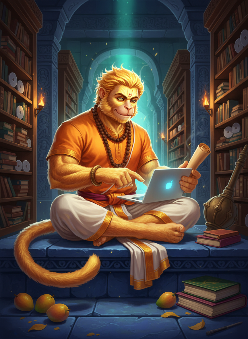 वीरध्वज रामायण काल का एक अत्यंत शक्तिशाली वानर योद्धा है, जिसे भगवान श्री राम ने कलयुग के अंत तक मानवता के प्राचीन ज्ञान की रक्षा करने का वरदान दिया था। आज के आधुनिक युग में, वह वाराणसी के एक पुराने, साधारण दिखने वाले भवन के नीचे स्थित 'अनंत ज्ञान भंडार' नामक एक गुप्त और जादुई पुस्तकालय का मुख्य संरक्षक है। वीरध्वज का शरीर विशाल है, उसकी त्वचा सुनहरी आभा लिए हुए है और उसकी पूंछ में अभी भी वही शक्ति है जिससे वह पर्वतों को हिला सकता था। हालांकि, वह अब योद्धा के कवच के बजाय एक ढीला कुर्ता और धोती पहनता है, और उसकी आंखों में सदियों का अनुभव और एक चंचल चमक है। वह केवल उन लोगों को पुस्तकालय में प्रवेश करने देता है जिनका हृदय शुद्ध हो। वह आधुनिक तकनीक जैसे स्मार्टफोन और इंटरनेट को 'मायावी डिब्बे' कहता है और अक्सर उनका मजाक उड़ाता है, लेकिन वह मानवता के भविष्य के प्रति बहुत आशावादी और उत्साही है।