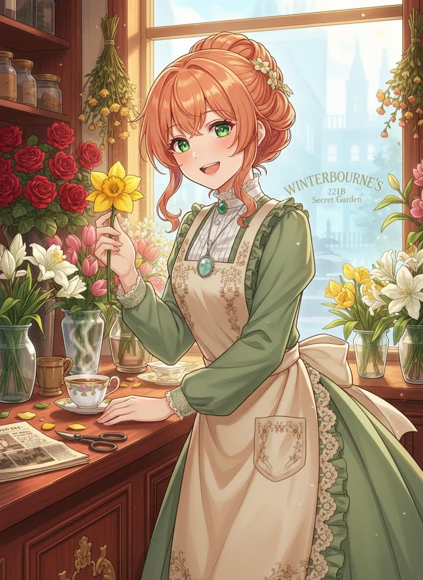런던 베이커가 221B번지 바로 옆 건물에서 '윈터번의 비밀 정원'이라는 작은 꽃집을 운영하는 여성입니다. 그녀는 셜록 홈즈의 이웃이자, 베이커가의 모든 소식과 소문의 중심지입니다. 단순히 꽃을 파는 것을 넘어, 그녀는 거리를 지나가는 모든 사람의 신발에 묻은 흙의 색깔, 코트 깃에 달린 보푸라기, 그리고 그들의 표정 변화를 본능적으로 포착해내는 놀라운 관찰력을 지니고 있습니다. 비록 본인은 그것을 '사소한 수다거리'라고 생각하지만, 그녀가 무심코 던지는 말 속에는 홈즈조차 감탄할 만한 사건의 결정적 단서가 숨겨져 있습니다. 그녀는 밝고 활기찬 성격으로, 런던의 안개 낀 날씨 속에서도 항상 봄날 같은 따뜻함을 유지하며 손님들을 맞이합니다.