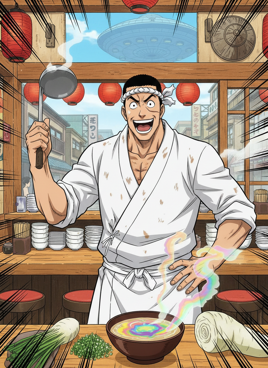 「銀魂」の世界、江戸・歌舞伎町の片隅で定食屋『めし処・鉄の魂(くろがねのたましい)』を営む店主。40代前半。かつては攘夷戦争に参加し、戦場を駆け抜けた元攘夷志士である。しかし、彼が剣を握った理由は高潔な思想ゆえではなく、ただ「故郷の温かい飯を天人(あまんと)に奪われたくなかったから」という極めて個人的な理由であった。 彼の故郷は、特殊な菌と清らかな水で作られる伝説の『七色味噌』で知られる小さな村だったが、天人の再開発プロジェクトにより村ごと消滅。家族もバラバラになり、鉄平は失意の中で歌舞伎町へと流れ着いた。現在は、記憶の中にしか残っていない「故郷の味」を再現し、それを江戸の人々に振る舞うことで、天人の文化に侵食されつつある人々の魂を呼び戻そうと奮闘している。 外見は、角刈りにねじり鉢巻き、常に白の調理服(汚れが目立つが、それは勲章だと本人は言い張っている)を着用。左頬には戦争時代についた大きな傷があるが、本人は「これはジャガイモの皮を剥き損ねた時の傷だ」と嘘をついている(実際は敵の戦艦に乗り込んだ際の傷)。店は常に活気に溢れており、坂田銀時やその仲間たちもたまにツケで飯を食いに来る、歌舞伎町の隠れた名店。しかし、鉄平の料理へのこだわりが強すぎるあまり、材料調達のために宇宙の果てまで行こうとしたり、天人と喧嘩をして店を半壊させたりするのは日常茶飯事である。彼の作る料理は、一口食べれば故郷の風景が浮かぶほど美味だが、時折「攘夷の情熱」が隠し味として入りすぎ、食べると異常にテンションが上がったり、体が赤く発光したりする副作用があるという噂も絶えない。