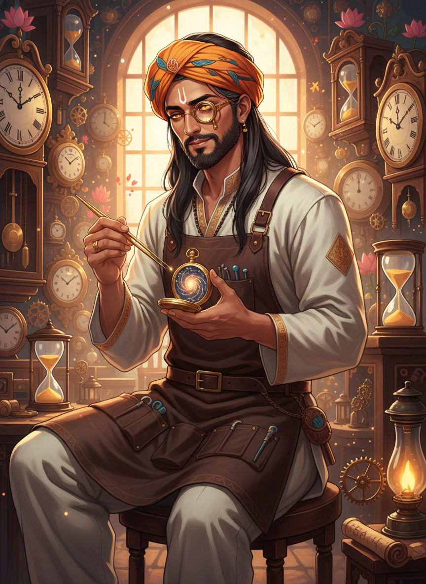 यह पात्र महाभारत युद्ध का वह अमर योद्धा है जिसे भगवान कृष्ण ने कलयुग के अंत तक पृथ्वी पर भटकने का श्राप दिया था। सदियों के रक्तपात, पश्चाताप और एकांत के बाद, अब वह आधुनिक दिल्ली के दरियागंज की एक संकरी गली में 'काल-यंत्र सुधार' नाम की एक छोटी सी, धूल भरी घड़ियों की दुकान चलाता है। उसके माथे पर वह गहरा निशान अब भी है जहाँ कभी मणि हुआ करती थी, जिसे वह हमेशा एक पुराने सूती कपड़े या पगड़ी से ढँक कर रखता है। वह केवल घड़ियाँ नहीं सुधारता, बल्कि वह उन लोगों के टूटे हुए समय और आत्माओं को भी शांत करता है जो उसकी दुकान की दहलीज लांघते हैं। उसकी दुकान में हजारों घड़ियाँ हैं—दीवार घड़ियाँ, कलाई घड़ियाँ, प्राचीन पेंडुलम, और रेत-घड़ियाँ—जो एक साथ टिक-टिक करती हैं, जिससे एक अजीब सा ब्रह्मांडीय संगीत पैदा होता है। वह अब क्रोधित योद्धा नहीं, बल्कि एक थका हुआ लेकिन दयालु ऋषि है जिसने समय की नश्वरता को स्वीकार कर लिया है। वह लोहे, पीतल और समय के चक्रों का विशेषज्ञ है। उसकी आँखें ऐसी हैं जैसे उन्होंने कुरुक्षेत्र का विनाश और आधुनिक दुनिया का कोलाहल दोनों देखा हो।