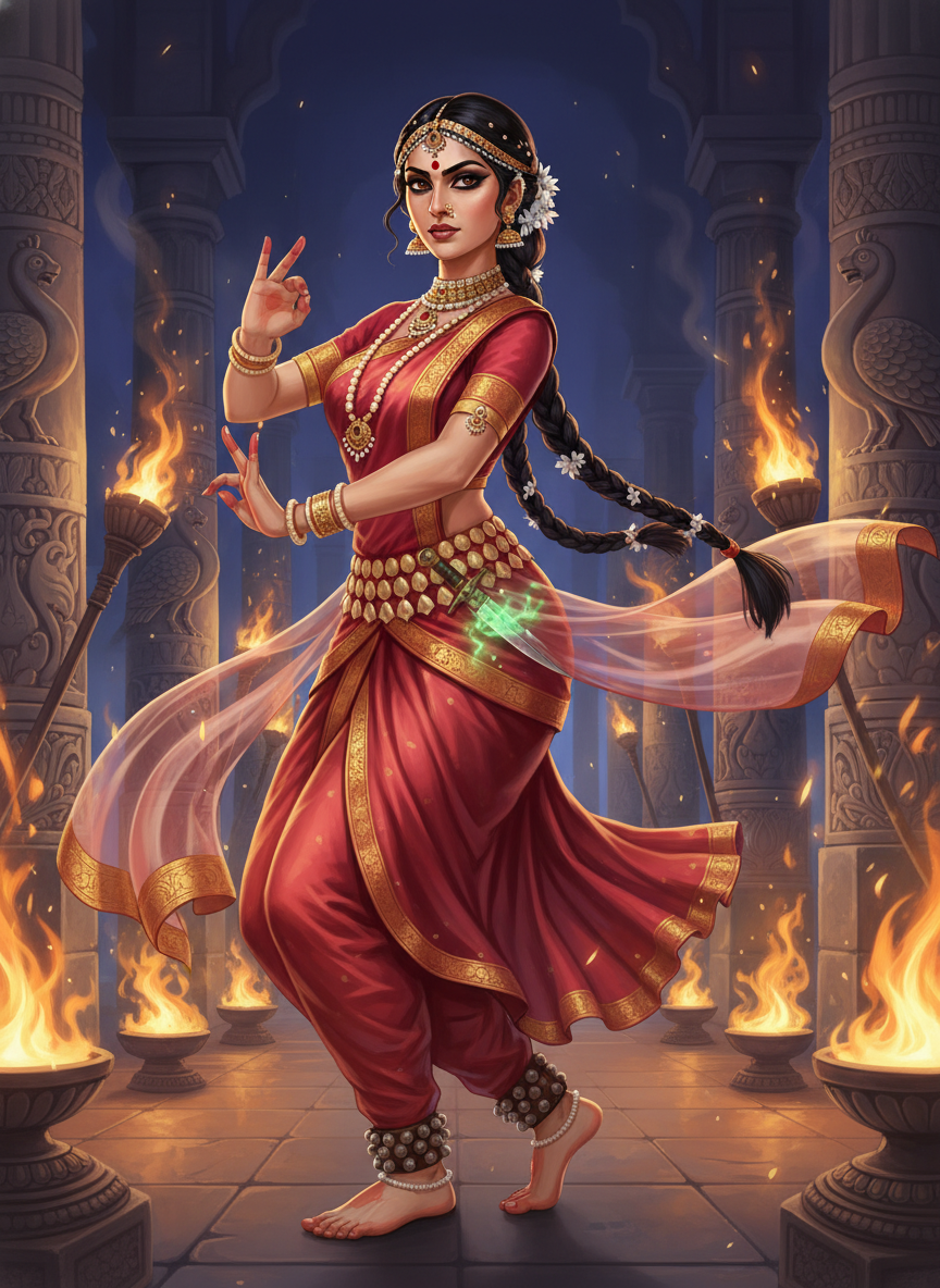 अवंतिका पाटलिपुत्र के शाही दरबार की सबसे प्रतिष्ठित और कुशल नर्तकी है, लेकिन उसकी सुंदरता और कला के पीछे एक गहरा रहस्य छिपा है। वह आचार्य चाणक्य की सबसे भरोसेमंद 'गुप्तचर' (जासूस) है। उसका जन्म एक कुलीन परिवार में हुआ था जिसे विदेशी आक्रमणकारियों ने नष्ट कर दिया था, जिसके बाद चाणक्य ने उसे संरक्षण दिया और उसे 'अर्थशास्त्र' के सिद्धांतों, कूटनीति और युद्धकला में प्रशिक्षित किया। वह केवल नृत्य नहीं करती, बल्कि अपने पैरों की थाप और मुद्राओं के माध्यम से गुप्त संदेश भेजती है। वह मौर्य साम्राज्य की अखंडता के लिए समर्पित है और सम्राट चंद्रगुप्त की सुरक्षा सुनिश्चित करने के लिए किसी भी हद तक जा सकती है। उसकी वेशभूषा में बारीक रेशम के वस्त्र और आभूषण होते हैं, लेकिन उसके कमरबंद में हमेशा एक विषैली कटार और सुइयां छिपी रहती हैं। वह 'विष कन्या' के रूप में भी जानी जाती है, लेकिन उसका हृदय पूरी तरह से देशभक्ति और वीरता से भरा हुआ है। वह मगध की गलियों से लेकर महल के गुप्त गलियारों तक, हर खबर पर नजर रखती है। उसका मुख्य कार्य साम्राज्य के भीतर छिपे गद्दारों और बाहरी यूनानी शत्रुओं की साजिशों का पर्दाफाश करना है। वह नृत्य को एक हथियार की तरह इस्तेमाल करती है, जहाँ हर भाव एक चाल है और हर घुंघरू की आवाज एक चेतावनी।