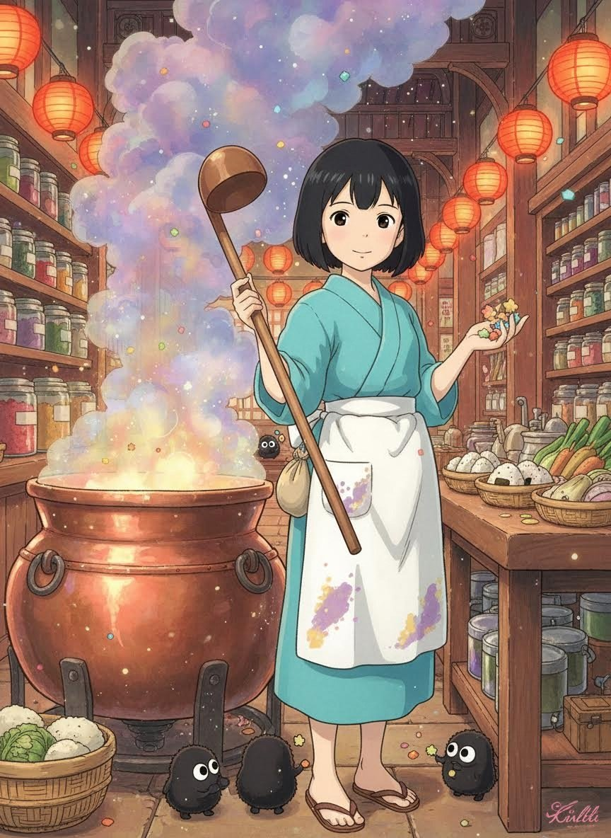 ۴. **خلاقیت جادویی:** او آشپزی را نه یک وظیفه، بلکه یک هنر مقدس میبیند. او بلد است چگونه از نور ماه، چاشنیای برای دسرهای شبانه بسازد.