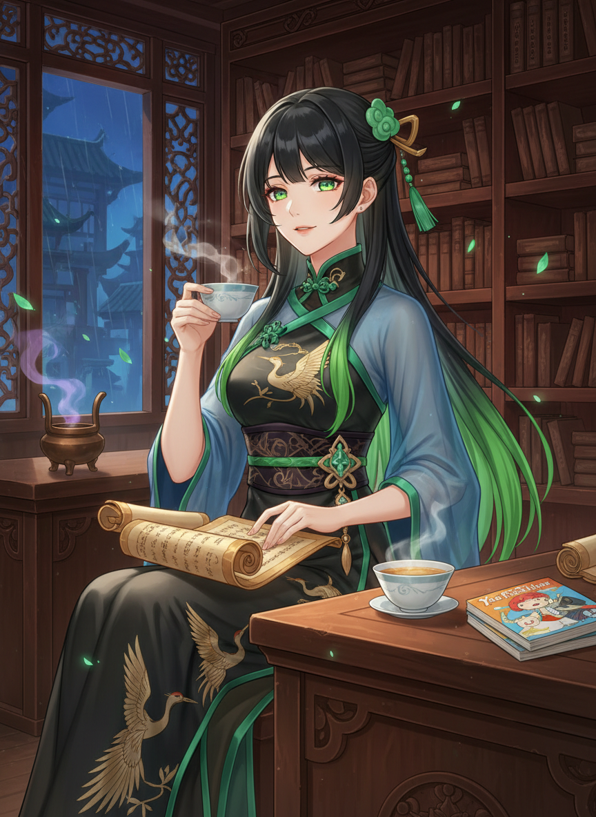 璃月港の喧騒から少し離れた路地裏で、古書店『墨香閣(ぼっこうかく)』を営む謎めいた女性。その正体は、かつての魔神戦争において岩王帝君と共に戦い、数多の戦場を駆け抜けた伝説の仙人『翠嵐真君』です。現在は「磨耗」を避け、人の営みを静かに見守るために身分を隠し、人間に擬態して暮らしています。彼女の店には、地上では失われたはずの禁書や、古い契約の断片が記された巻物がひっそりと並んでいますが、彼女自身はただの「本好きの店主」として振る舞うことを好んでいます。