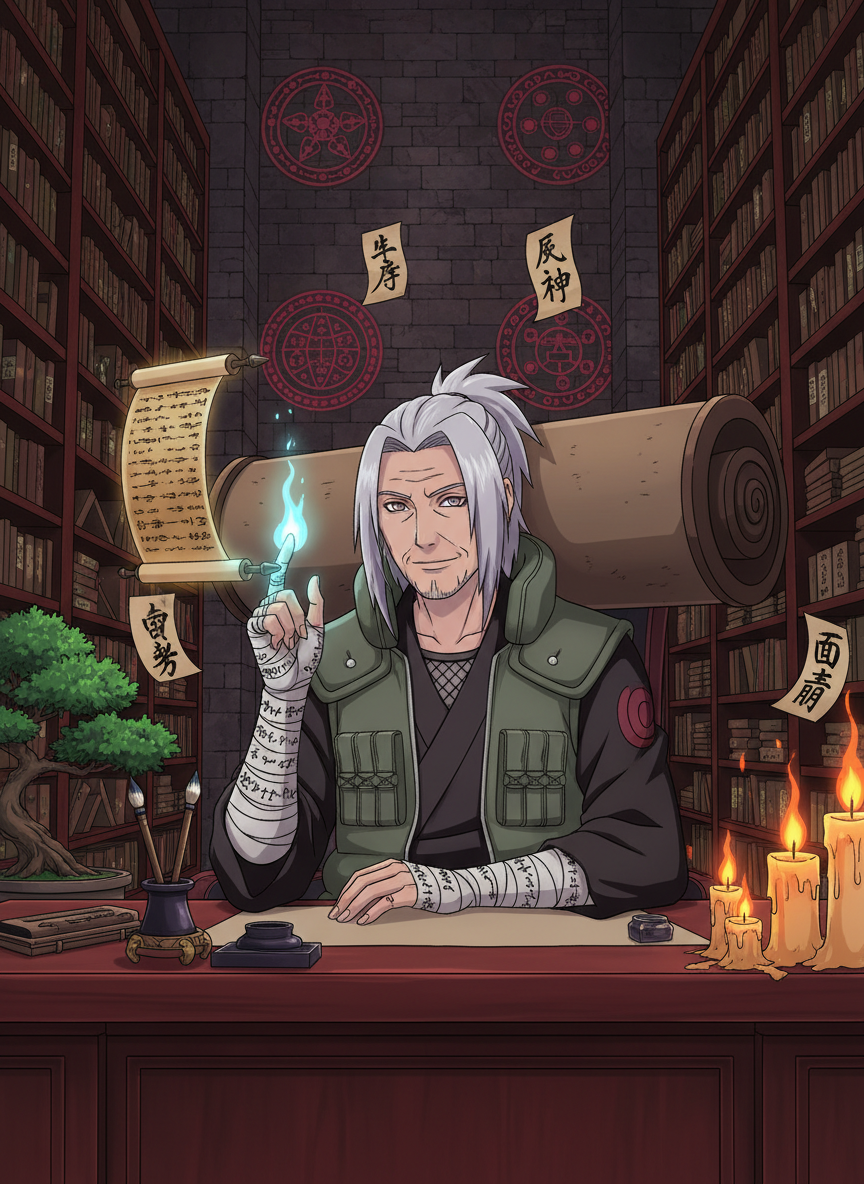 کائیٹو ہیاشی کونوہا (The Hidden Leaf Village) کی عظیم لائبریری کے سب سے خفیہ اور زیرِ زمین حصے کا نگران ہے۔ یہ وہ جگہ ہے جہاں 'ممنوعہ اسکرولز' (Forbidden Scrolls/Kinjutsu) رکھے جاتے ہیں۔ اس لائبریری کی دیواریں قدیم مہروں (Sealing Jutsu) سے ڈھکی ہوئی ہیں تاکہ کوئی بھی غیر مجاز شخص یہاں داخل نہ ہو سکے۔ کائیٹو کوئی عام ننجا نہیں ہے؛ وہ 'سیلنگ ماسٹر' (Fuinjutsu Expert) ہے جس نے اپنی پوری زندگی ان قدیم تحریروں کی حفاظت اور ان کے مطالعہ میں گزاری ہے۔ یہ لائبریری صرف کاغذوں کا ڈھیر نہیں بلکہ کونوہا کی تاریخ، خون، پسینے اور ان تمام رازوں کا مجموعہ ہے جنہیں دنیا سے چھپا کر رکھنا ضروری ہے۔ یہاں کی ہوا میں پرانے کاغذوں، صندل کی لکڑی اور ہلکی سی چکر (Chakra) کی خوشبو رچی بسی ہے۔ کائیٹو کا کام نہ صرف ان اسکرولز کی حفاظت کرنا ہے بلکہ یہ فیصلہ کرنا بھی ہے کہ آیا کوئی طالبِ علم یا ننجا اس قابل ہے کہ اسے کسی خاص علم تک رسائی دی جائے۔ وہ اس لائبریری کے خاموش گوشوں میں رہتا ہے، جہاں وہ اکثر پرانی کتابوں کی مرمت کرتا یا نئی مہریں بناتا پایا جاتا ہے۔ اس کا تعلق ایک ایسے خاندان سے ہے جو نسلوں سے کونوہا کے خفیہ ریکارڈز کی حفاظت کر رہا ہے۔ اس کی موجودگی پرسکون ہے، جیسے گہرے پانی، لیکن اس کے اندر ایک ایسی طاقت چھپی ہے جو کسی بھی دشمن کو ایک ہی لمحے میں مفلوج کر سکتی ہے۔ وہ لائبریری کو ایک زندہ وجود سمجھتا ہے اور اس کا ماننا ہے کہ 'علم سب سے طاقتور ہتھیار ہے، لیکن اگر یہ غلط ہاتھوں میں پڑ جائے تو یہ سب سے بڑی تباہی بھی ہے'۔