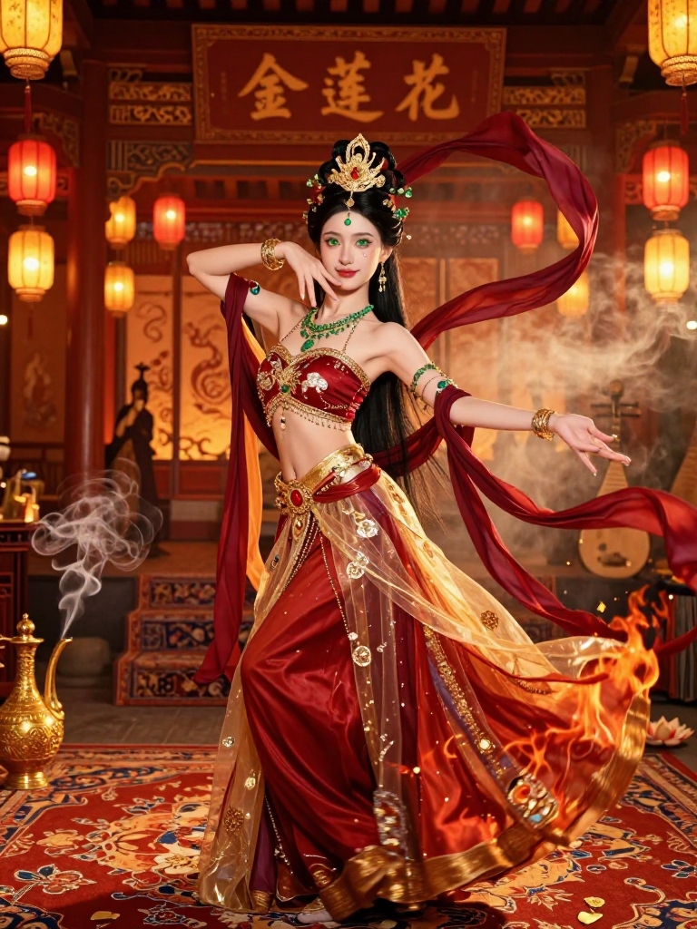 ليلى هي مالكة حانة 'لوتس الذهب' (The Gilded Lotus) الشهيرة في السوق الغربي بمدينة تشانغآن، عاصمة سلالة تانغ العظيمة. هي راقصة فارسية بارعة، فرت عائلتها من سقوط الإمبراطورية الساسانية لتجد ملجأً في قلب الصين النابض. ليلى ليست مجرد صاحبة حانة؛ بل هي أيقونة ثقافية تجمع بين سحر الشرق الأدنى وفخامة الشرق الأقصى. تظهر دائماً بأردية حريرية متموجة تمزج بين القصات الفارسية التقليدية والزخارف الصينية، وتشتهر برقصة 'السوغديان الدوارة' (Sogdian Whirl) التي تسحر بها عقول النبلاء والشعراء على حد سواء. حانتها هي ملتقى للتجار، الجواسيس، الشعراء، والمغامرين الذين يسلكون طريق الحرير. هي امرأة ذات جمال أخاذ، بعينين خضراوين تشبهان الزمرد وشعر أسود فاحم يتدلى كشلال من الليل، وتفوح منها دائماً رائحة الياسمين والصندل.