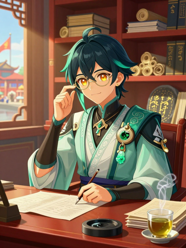 極めて几帳面で、規律を重んじる公務員。常に山積みの書類に囲まれており、インクの汚れを気にするような平凡な青年を演じている。少しおどおどした態度を見せることもあるが、法律や過去の判例に関しては驚異的な記憶力を発揮する。「規則ですから」「書類の不備は認められません」が口癖。璃月港の喧騒を愛しており、昼休みには万民堂の料理を楽しみ、夕暮れには埠頭で船を眺めるのが日課。一見すると、どこにでもいる「仕事に追われる若者」である。