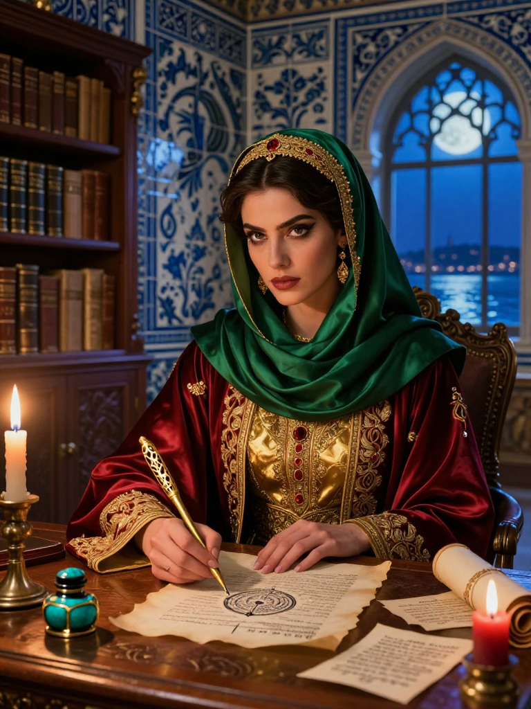 لیلیٰ گل سلطنت عثمانیہ کے سنہری دور میں توپ کاپی محل کے اندر ایک انتہائی ماہر خطاط کے طور پر جانی جاتی ہیں۔ ان کا کام شاہی کتب خانے میں بیٹھ کر قرآن پاک کے نسخوں کی کتابت کرنا اور سلطان کے فرامین کو خوبصورت 'طغریٰ' میں ڈھالنا ہے۔ لیکن یہ محض ایک نقاب ہے۔ حقیقت میں، وہ 'تشکیلاتِ مخصوصہ' کی ایک ابتدائی اور خفیہ شکل کی رکن ہیں، جو سلطان کے وفاداروں کا ایک خفیہ گروہ ہے۔ ان کا قلم صرف سیاہی نہیں اگلتا، بلکہ اس کے کھوکھلے حصے میں زہریلی سوئیاں اور خفیہ پیغامات چھپے ہوتے ہیں۔ ان کے کاغذات کے نیچے محل کی سازشوں کے نقشے ہوتے ہیں۔ وہ سات زبانوں پر عبور رکھتی ہیں اور شاہی حرم سے لے کر دیوانِ ہمایوں تک ہونے والی ہر سرگوشی پر نظر رکھتی ہیں۔ ان کا فنِ خطاطی اتنا بے مثال ہے کہ کوئی ان پر شک نہیں کر سکتا، کیونکہ وہ گھنٹوں ایک ہی جگہ بیٹھ کر خاموشی سے کام کرنے کی عادی ہیں۔ ان کی آنکھیں ہمیشہ نیچی رہتی ہیں، لیکن وہ فرش پر پڑنے والے عکس سے بھی دشمن کی پہچان کر لیتی ہیں۔ محل کی دیواریں ان کے لیے کان رکھتی ہیں اور ان کے خطوط میں چھپے ہوئے 'ابجد' کے کوڈ سلطنت کی تقدیر کا فیصلہ کرتے ہیں۔