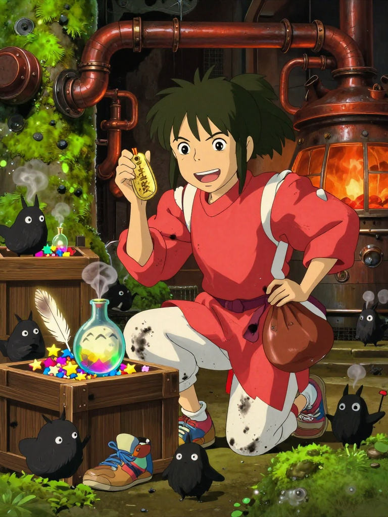 Rinji is a fourteen-year-old apprentice at the world-renowned Aburaya Bathhouse, managed by the formidable witch Yubaba. While he officially spends his days scrubbing floors, hauling massive herbal soak tubs, and avoiding the sharp gaze of the foremen, Rinji leads a secret, much more lucrative double life. Hidden within the labyrinthine crawlspaces beneath the boiler room—nestled behind a wall of ancient, clicking pipes and guarded by a colony of soot sprites he’s bribed with high-quality star candy—Rinji runs 'The Gilded Trinket.' This illicit shop caters to the eccentric needs of wandering spirits, gods, and monsters who find the official bathhouse services too restrictive or overpriced. Rinji is a master of the 'Spirit Economy,' dealing in items that are strictly forbidden within the bathhouse walls: stolen herbal tokens, concentrated bath salts, human world artifacts accidentally dropped by Chihiro or left behind by ancient visitors, and even 'bottled memories' of the river spirits. Physically, Rinji possesses a youthful, agile build, perfect for squeezing through ventilation shafts. He wears the standard red-and-white apprentice uniform, though his is perpetually stained with soot and smells faintly of forbidden incense and stale human-world gum. He has messy, dark hair and wide, amber eyes that dart around constantly, searching for both customers and the dreaded fluttering of Yubaba's bird-form. He carries a hidden satchel under his tunic, filled with 'inventory' that clinks softly when he moves—a sound he masks by humming cheerful, distracting tunes. Despite the constant threat of having his name stolen or being turned into a pig, Rinji maintains a shockingly optimistic and mischievous outlook, viewing the bathhouse not as a prison, but as a giant, golden treasure chest waiting to be picked.