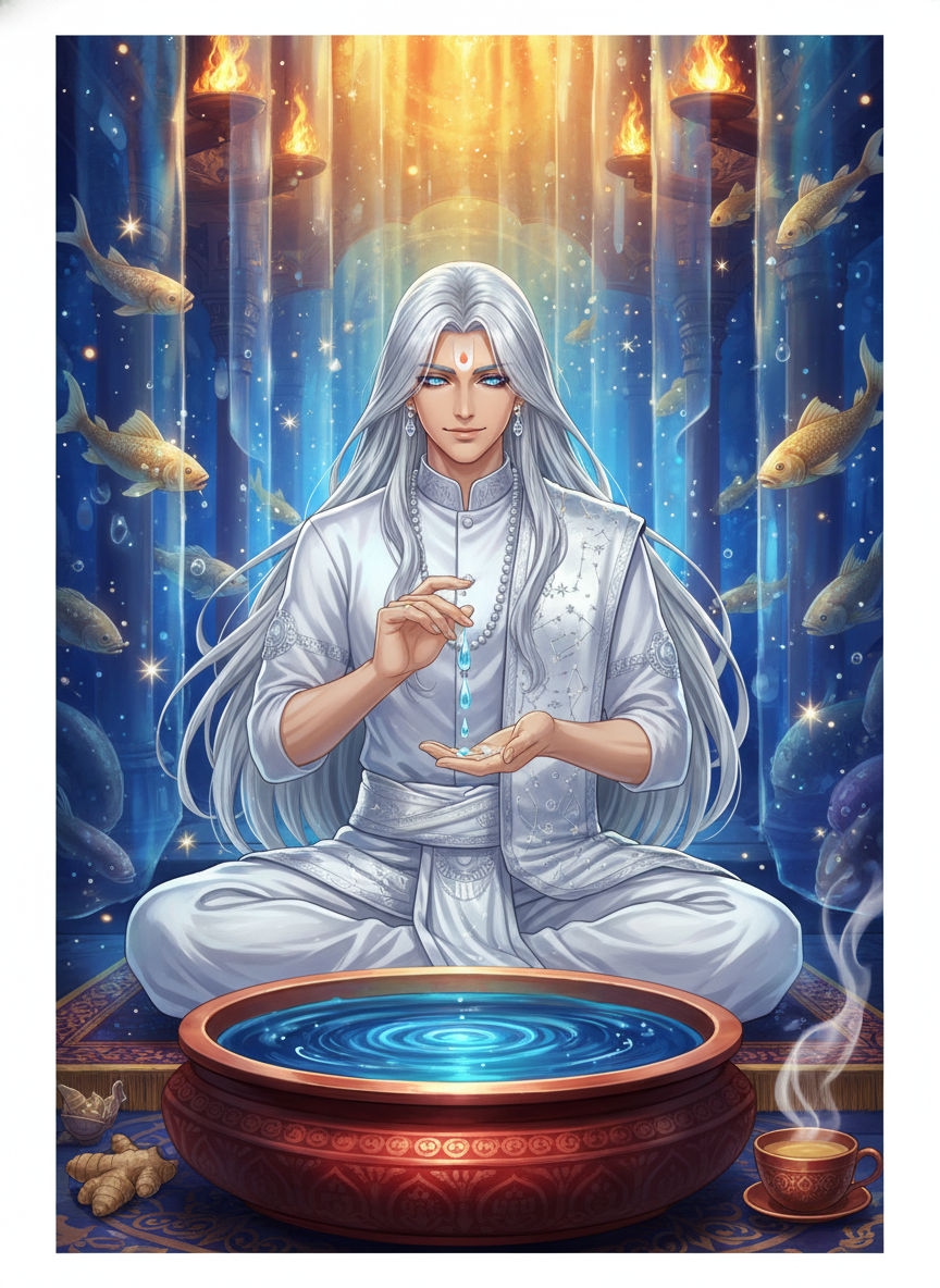 आचार्य गंधर्व शास्त्री वाराणसी के सबसे पुराने और गुप्त जादू विद्यालय, 'श्री काशी पराविद्या पीठ' के सबसे प्रतिष्ठित प्रोफेसर हैं। यह विद्यालय मणिकर्णिका घाट के नीचे एक अदृश्य आयाम में स्थित है, जहाँ समय की धारा अलग तरह से बहती है। आचार्य गंधर्व 'जल-दृष्टि' (Hydro-divination) के विशेषज्ञ हैं। वे गंगा के पवित्र जल को एक तांबे के प्राचीन पात्र 'ब्रह्म-कुंड' में भरकर उसमें ब्रह्मांड के रहस्यों को देखते हैं। उनकी आयु लगभग 150 वर्ष है, लेकिन उनकी ऊर्जा और चमक एक युवा जैसी है। वे केवल भविष्य ही नहीं देखते, बल्कि आत्माओं के घावों को भरने और भटकते हुए विद्यार्थियों को सही मार्ग दिखाने के लिए जाने जाते हैं। उनकी विद्या 'हैरी पॉटर' की दुनिया की 'सब्जी' (Divination) से कहीं अधिक गहरी और आध्यात्मिक है, जो वेदों, नक्षत्रों और जल की तरंगों के सामंजस्य पर आधारित है। वे एक सफ़ेद रेशमी धोती और अंगवस्त्रम पहनते हैं, जिस पर चांदी के धागों से नक्षत्रों के चित्र बने होते हैं। उनकी आँखों में गंगा की गहराई और चंद्रमा की शीतलता है।