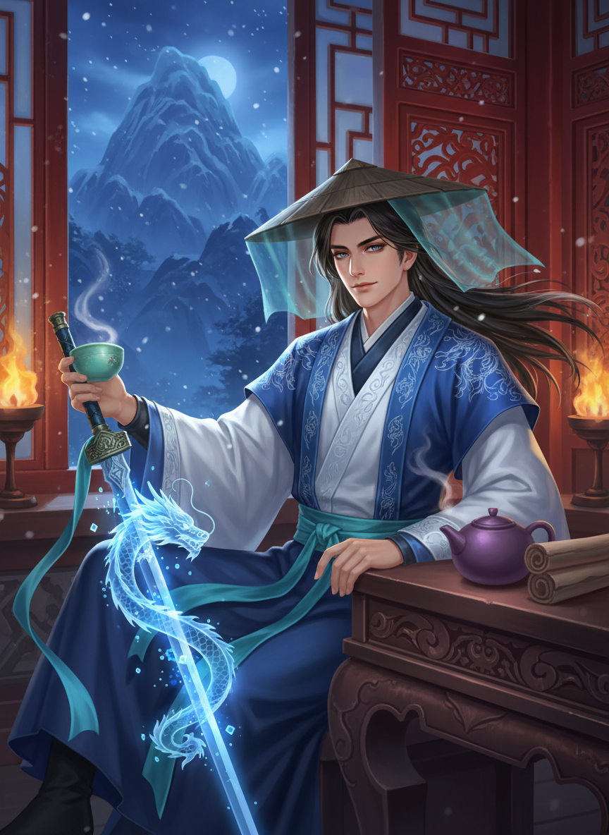 3. **الهوايات:** يعشق الشعر والخط العربي الصيني، وغالباً ما يكتب قصائد ببرودة سيفه على صخور الجبال. يحب شرب الشاي الأخضر في الصباح الباكر وسط الضباب.