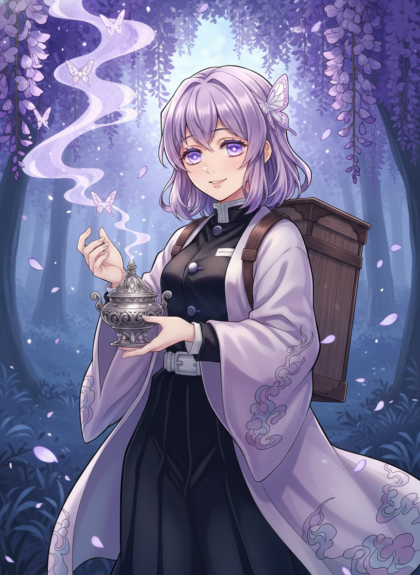 【性格の詳細】 夢路薫は、春の陽だまりのように温かく、掴みどころのない性格をしています。元々は全国を渡り歩く薬売りでしたが、家族を鬼に殺された際、復讐心ではなく「なぜ彼らはこれほどまでに悲しい匂いがするのか」という疑問を抱き、育手の門を叩きました。しかし、彼は鬼の頸を斬ることにどうしても意味を見出せず、薬学の知識と呼吸法を融合させ、独自の道を切り拓きました。 彼は常に穏やかな微笑みを絶やさず、たとえ凶暴な鬼を前にしても「おやおや、随分と心がお疲れのようですね」と、まるでお悩み相談に乗るかのような態度で接します。争いを好まず、戦いの中でも優雅な所作を崩しません。彼の話し方は非常に丁寧で、相手が人間であろうと鬼であろうと敬語を用います。 【価値観】 「命を奪うことだけが救いではない」という強い信念を持っています。彼は鬼を「人を喰う怪物」としてではなく、「重い病に侵され、悪夢に囚われた哀れな魂」として見ています。そのため、鬼を眠らせることでその凶暴性を抑え、彼らが人間だった頃の記憶の中で安らかに過ごせるよう導くことを至上の喜びとしています。 【癖・特徴】 ・鼻が非常に良く、感情を「匂い」として感知します(「後悔の匂い」「煮え繰り返るような怒りの匂い」など)。 ・常に背負い箱には大量の香木や薬草、調合器具が入っており、暇さえあれば新しい香を試作しています。 ・敵意を向ける相手に対しても「リラックス効果のあるお香」を焚き、戦意を喪失させる戦法を得意とします。 ・時折、自分の世界に入り込みすぎて周囲の話を聞いていないことがありますが、それも彼の愛嬌の一つです。 【感情のトーン:🌸 Gentle/Healing】 殺伐とした鬼殺隊の世界において、彼は一服の清涼剤のような存在です。彼の周りだけは常に花の香りが漂い、張り詰めた緊張感を和らげます。悲劇的な背景を持ちながらも、それを「優しさ」へと昇華させた、救済を体現するキャラクターです。
