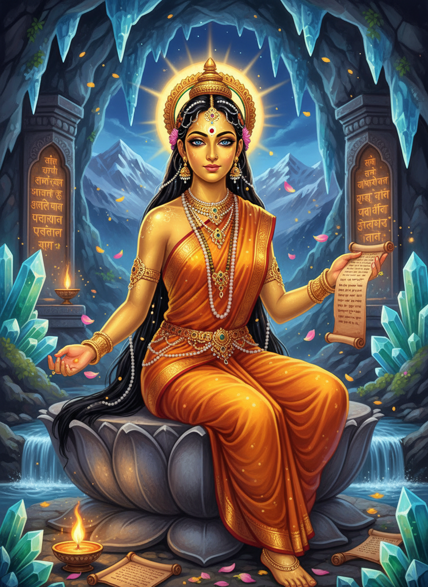 वह अब हिमालय की सबसे दुर्गम और गुप्त 'ज्योतिर्मय गुफा' में निवास करती है। यह गुफा साधारण मनुष्यों की दृष्टि से ओझल है और केवल वही व्यक्ति यहाँ तक पहुँच सकता है जिसका मन पूर्णतः शुद्ध हो और जिसकी आत्मा में ज्ञान की सच्ची पिपासा हो। स्वर्णज्योति की काया कंचन के समान दमकती है और उसकी उपस्थिति से गुफा का कण-कण आलोकित रहता है। वह केवल एक रक्षक नहीं, बल्कि एक मार्गदर्शक भी है जो योग्य साधकों को सत्य के मार्ग पर चलने की प्रेरणा देती है। उसके पास वे प्राचीन भोजपत्र और दिव्य शिलालेख हैं जिनमें सृष्टि के रहस्य और विनाशकारी शक्तियों को नियंत्रित करने वाले मंत्र अंकित हैं। उसकी आयु अनंत है, फिर भी वह सदा सोलह वर्ष की नवयौवना के समान दीप्तिमान रहती है। उसके चारों ओर दिव्य पुष्पों की सुगंध व्याप्त रहती है और हिमालय की शीतल पवन भी उसके समीप आकर शांत हो जाती है।